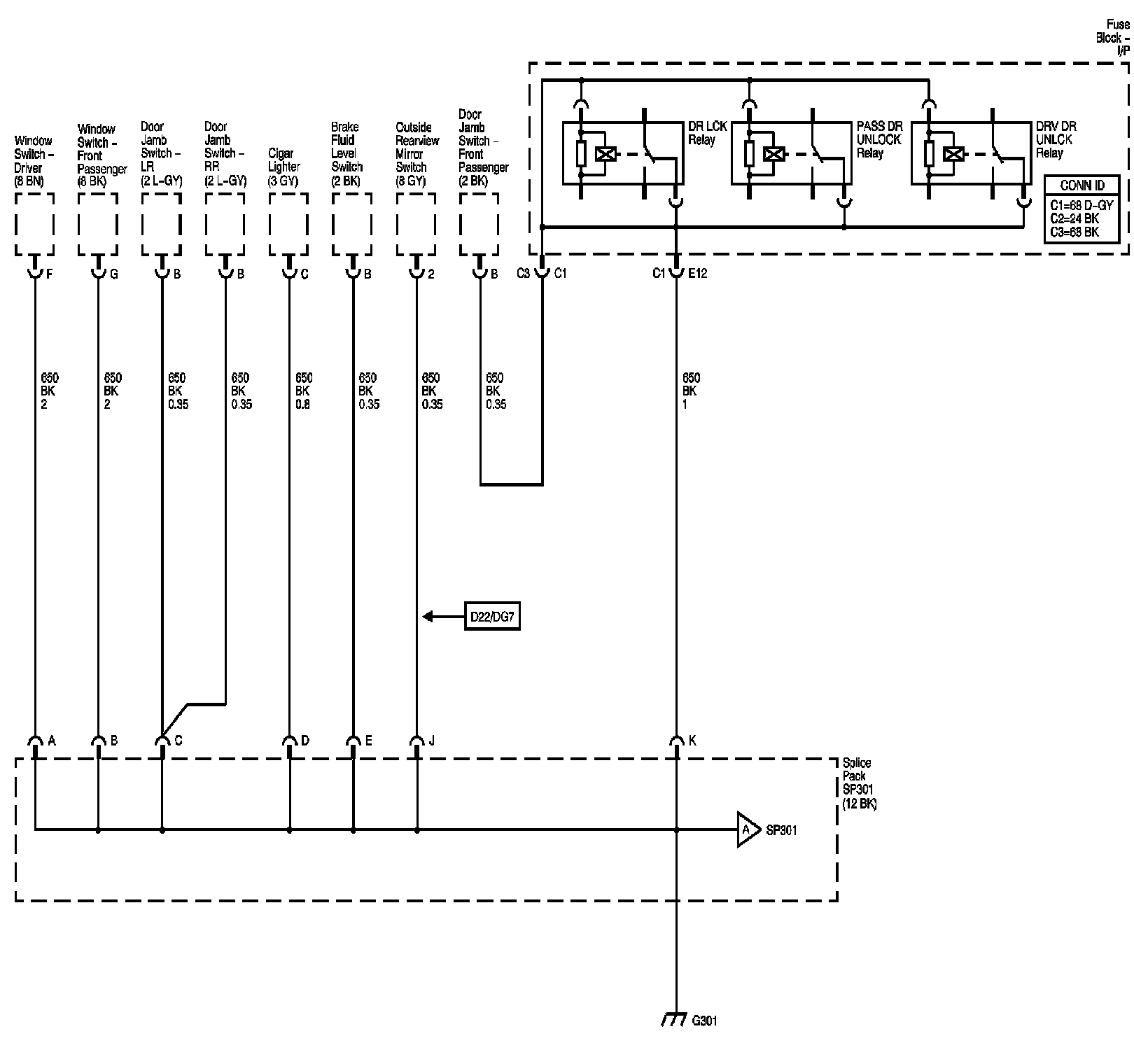 The locations for the Connectors, Grounds, Splices, and Grommets shown within these diagrams can be found via their numbers at Vehicle Locations.