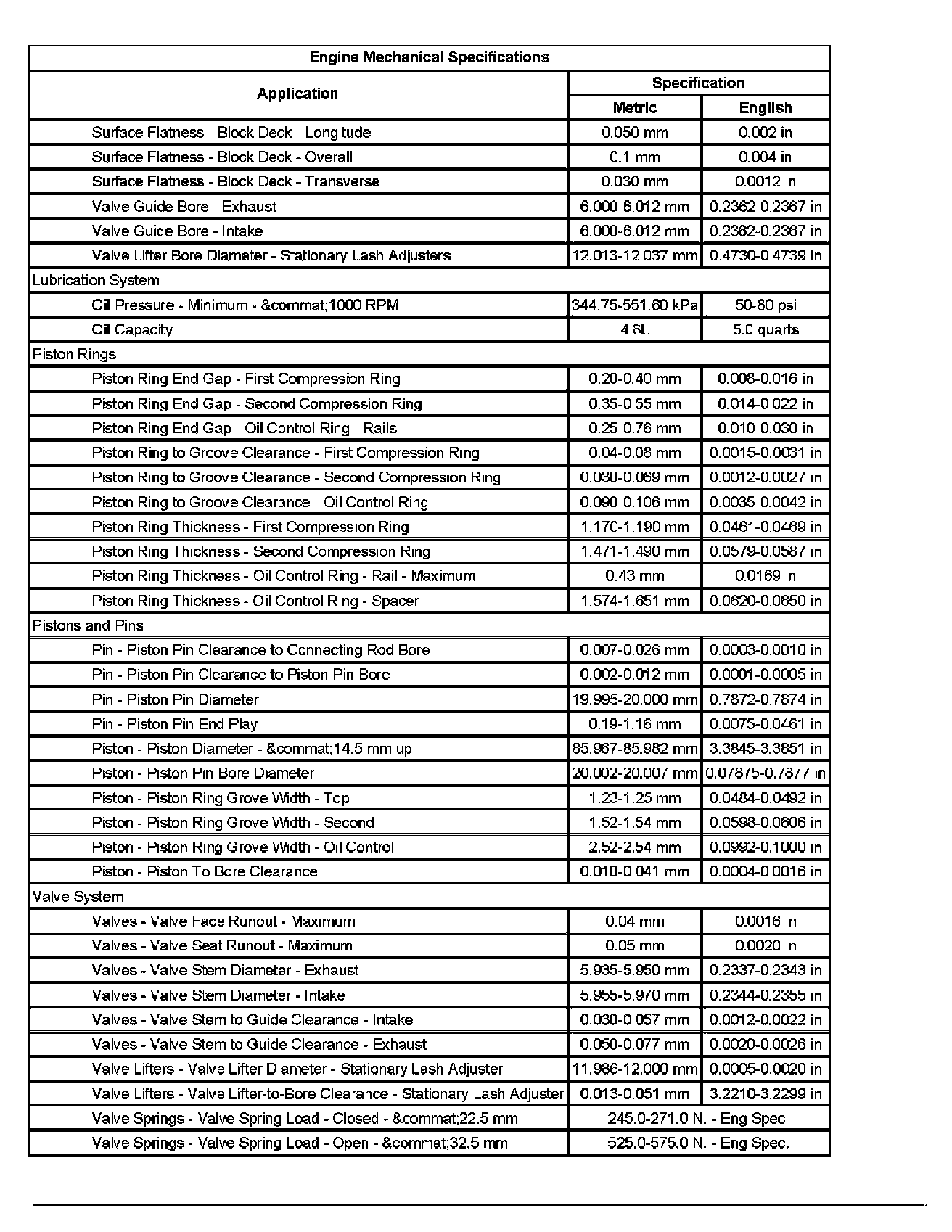 Engine Mechanical Specifications