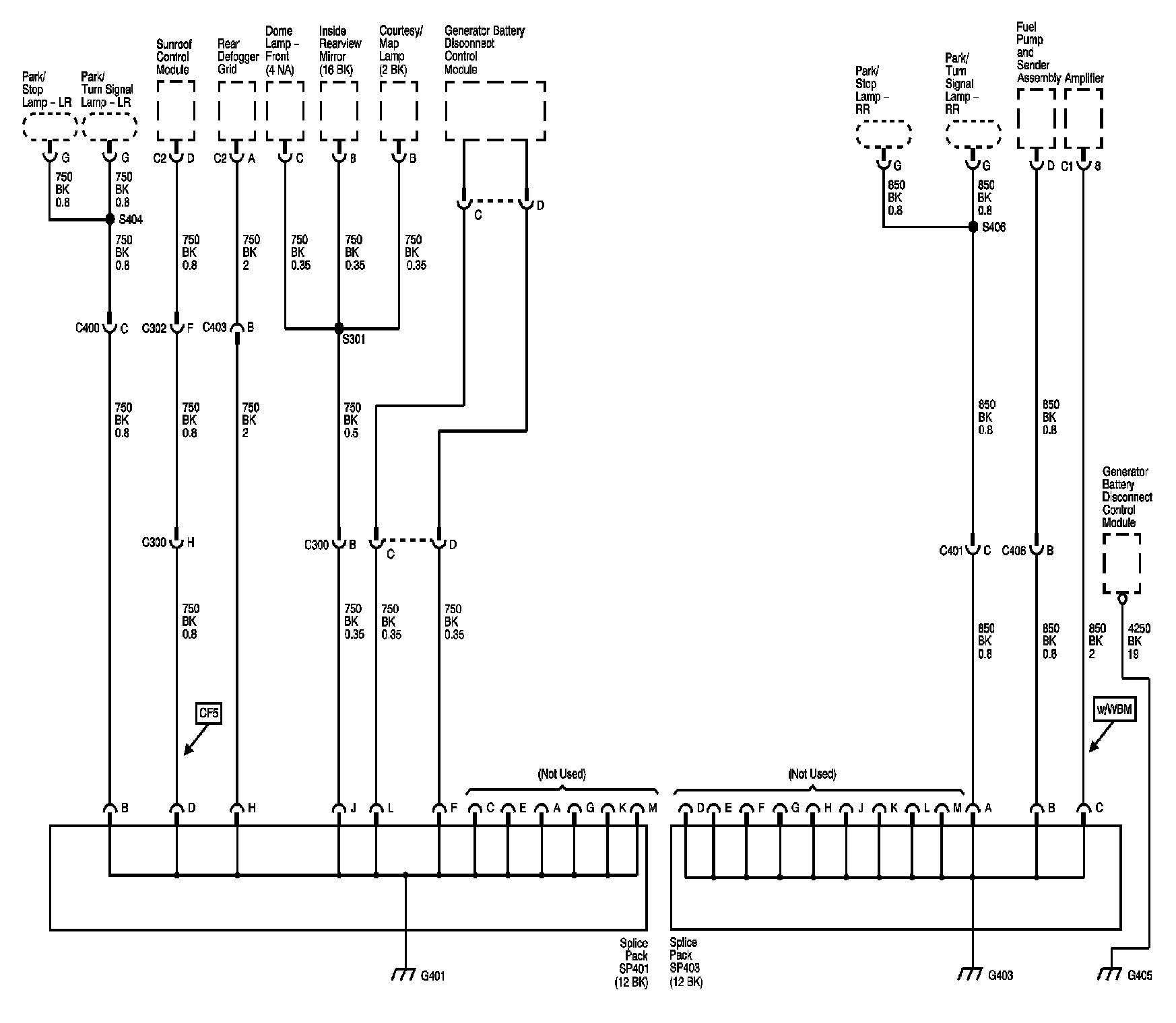 The locations for the Connectors, Grounds, Splices, and Grommets shown within these diagrams can be found via their numbers at Vehicle Locations.