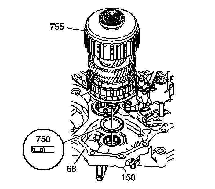 2. Measure the height (a) of the 1st/2nd clutch shaft assembly (755) from the top of the torque converter housing gasket (68) to the top of the 1st/2nd clutch shaft bearing (719).