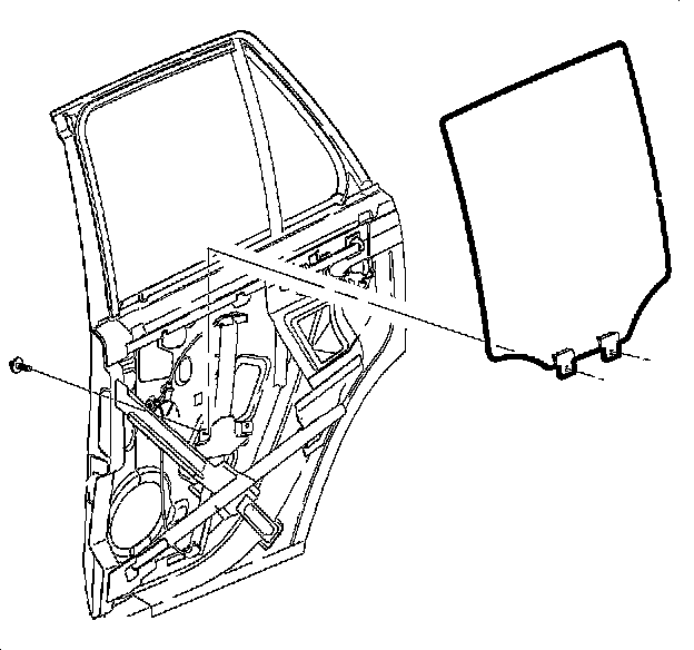 1. Install the window glass by sliding the window into the door through the outside door belt opening.