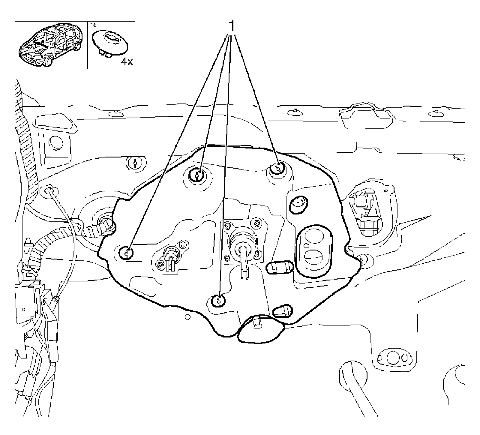 * Remove the bolt (1).