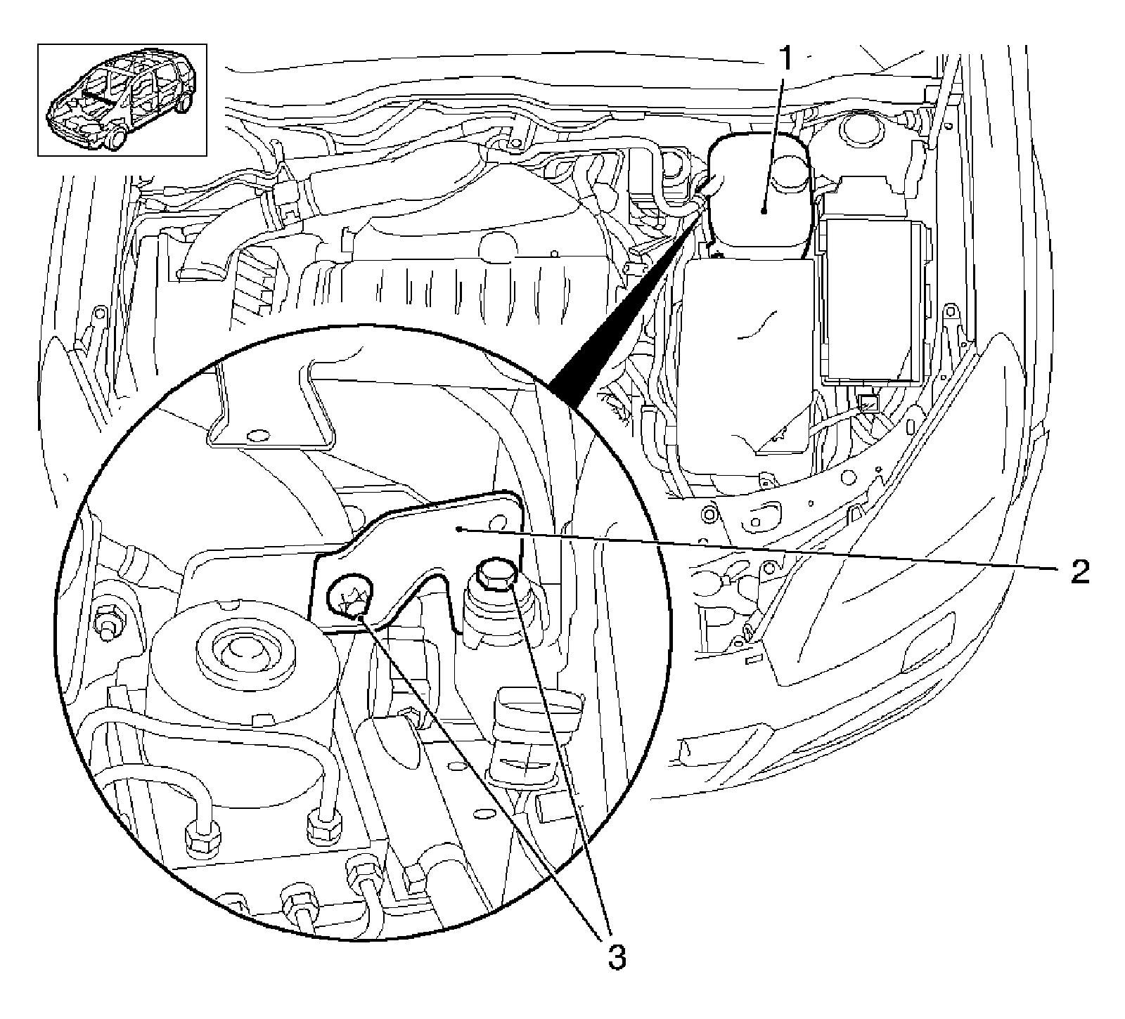 Remove the 2 bolts (3).
