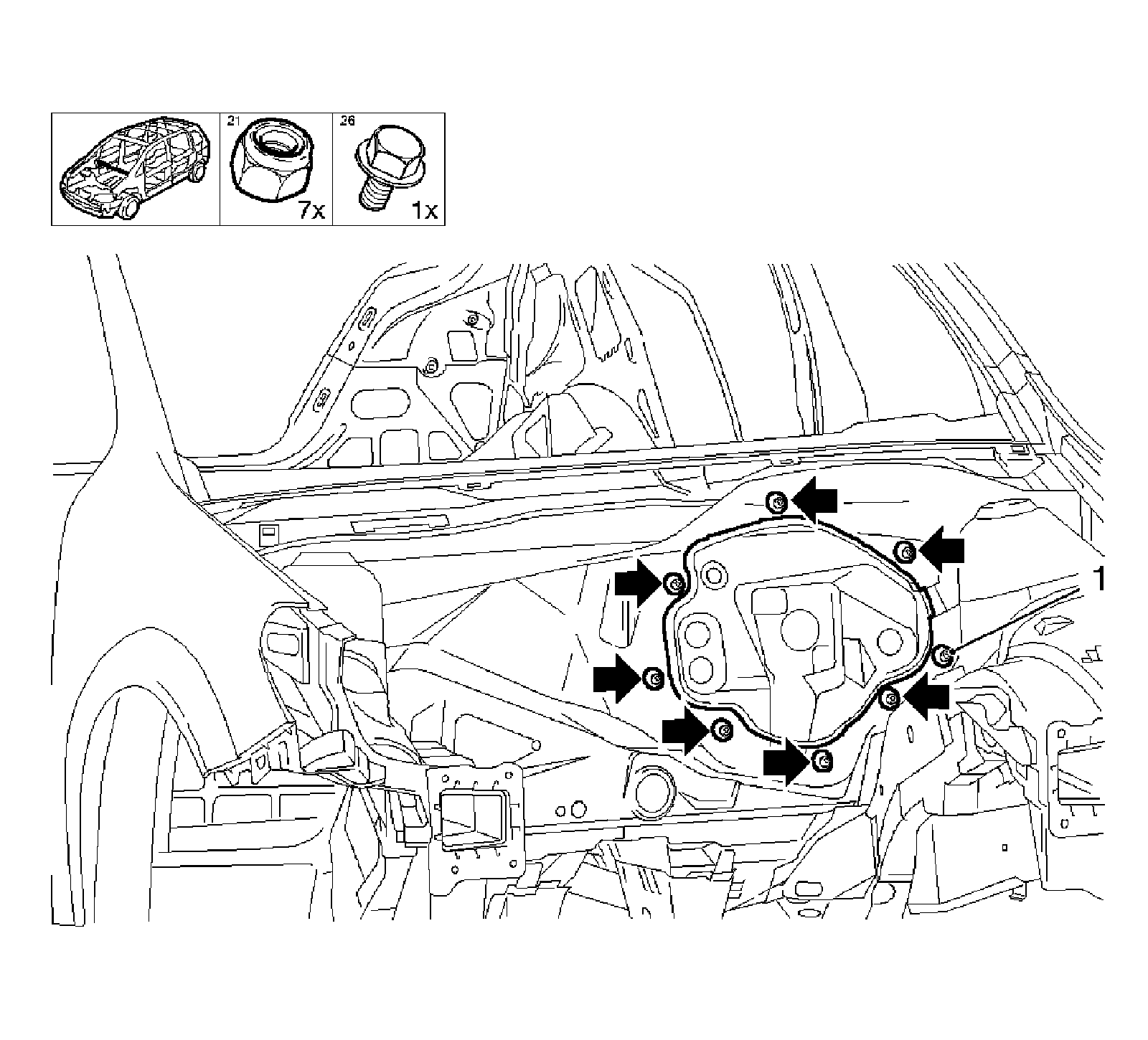 * Remove the 7 nuts (arrows).