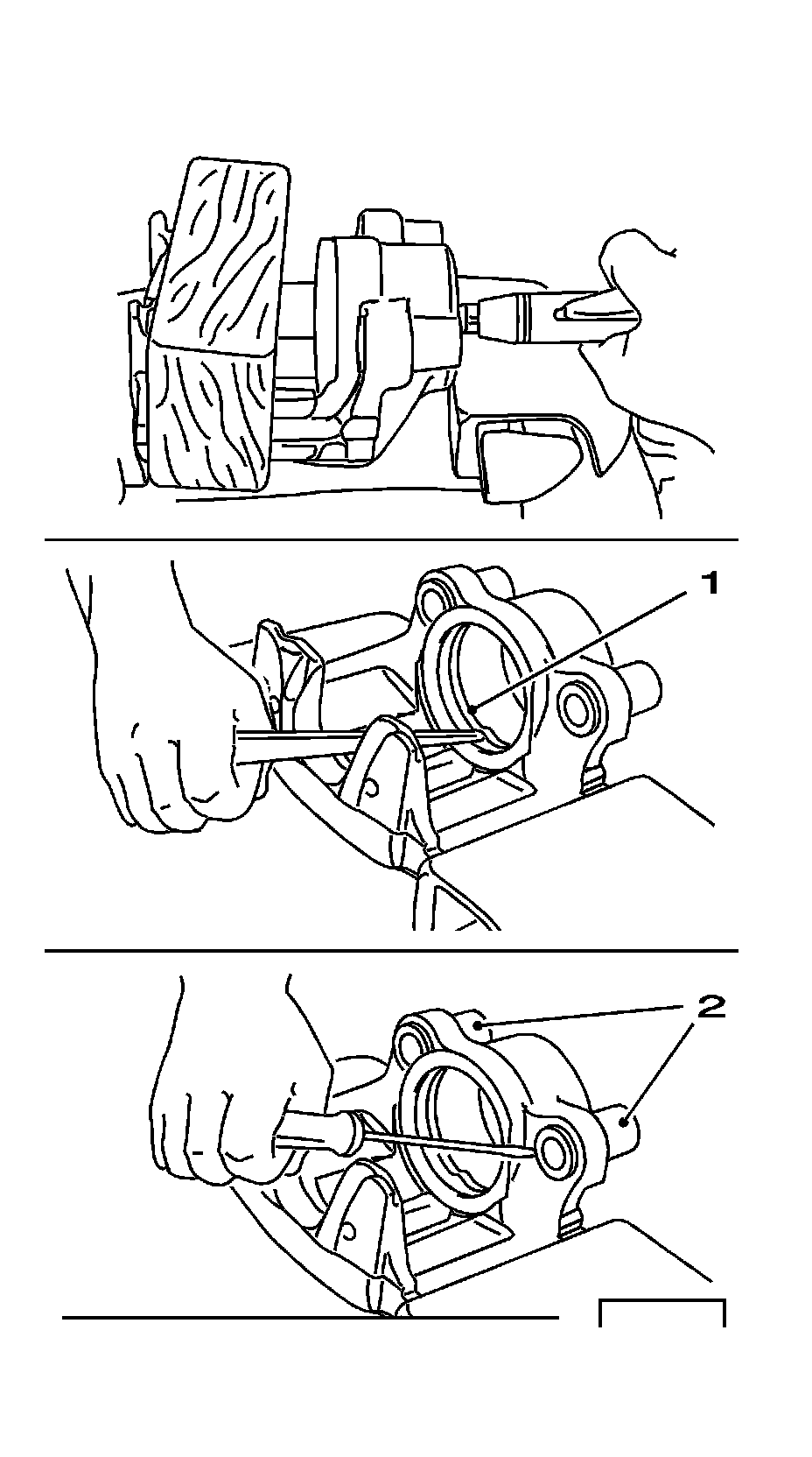 1. Remove the brake caliper. Refer to Front Brake Caliper Replacement (Front Brake Caliper Replacement) .