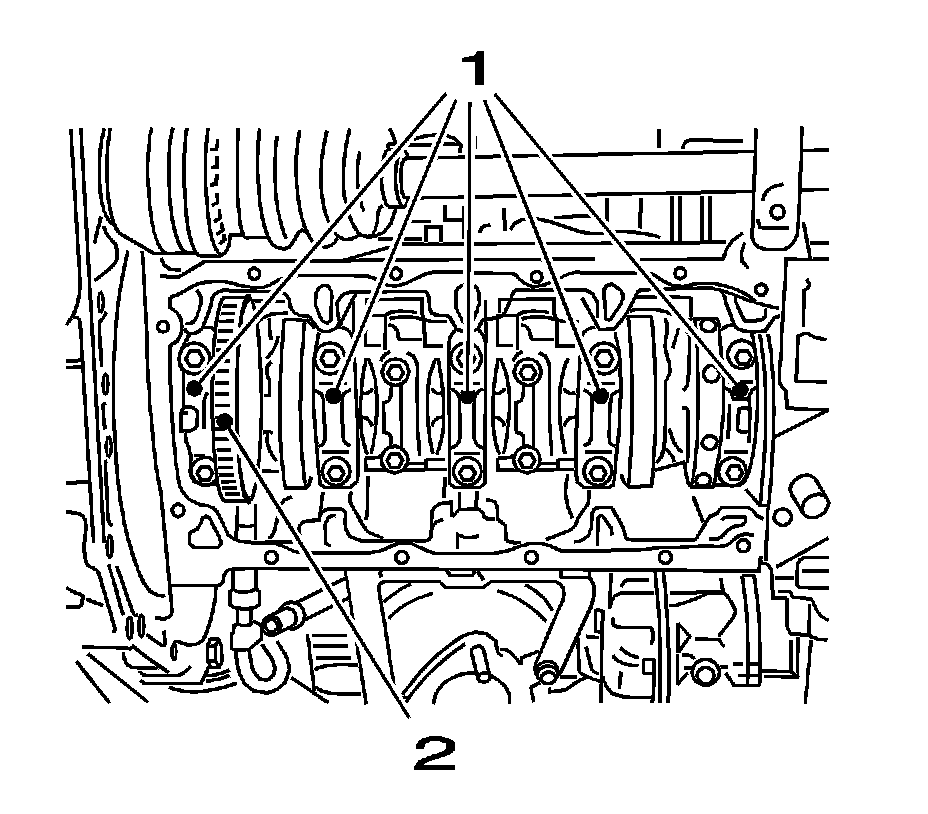 14. Remove the crankshaft bearing cap (1).