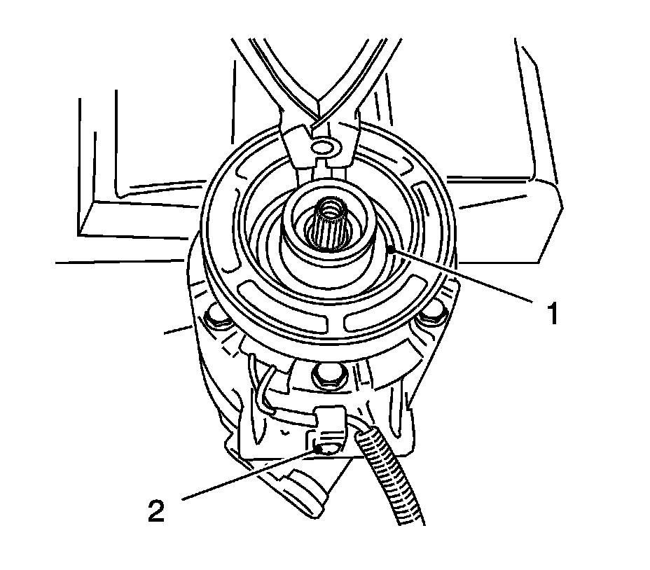 2. Remove the compressor pulley. Refer to Air Conditioning Compressor Pulley Replacement (Service and Repair) .