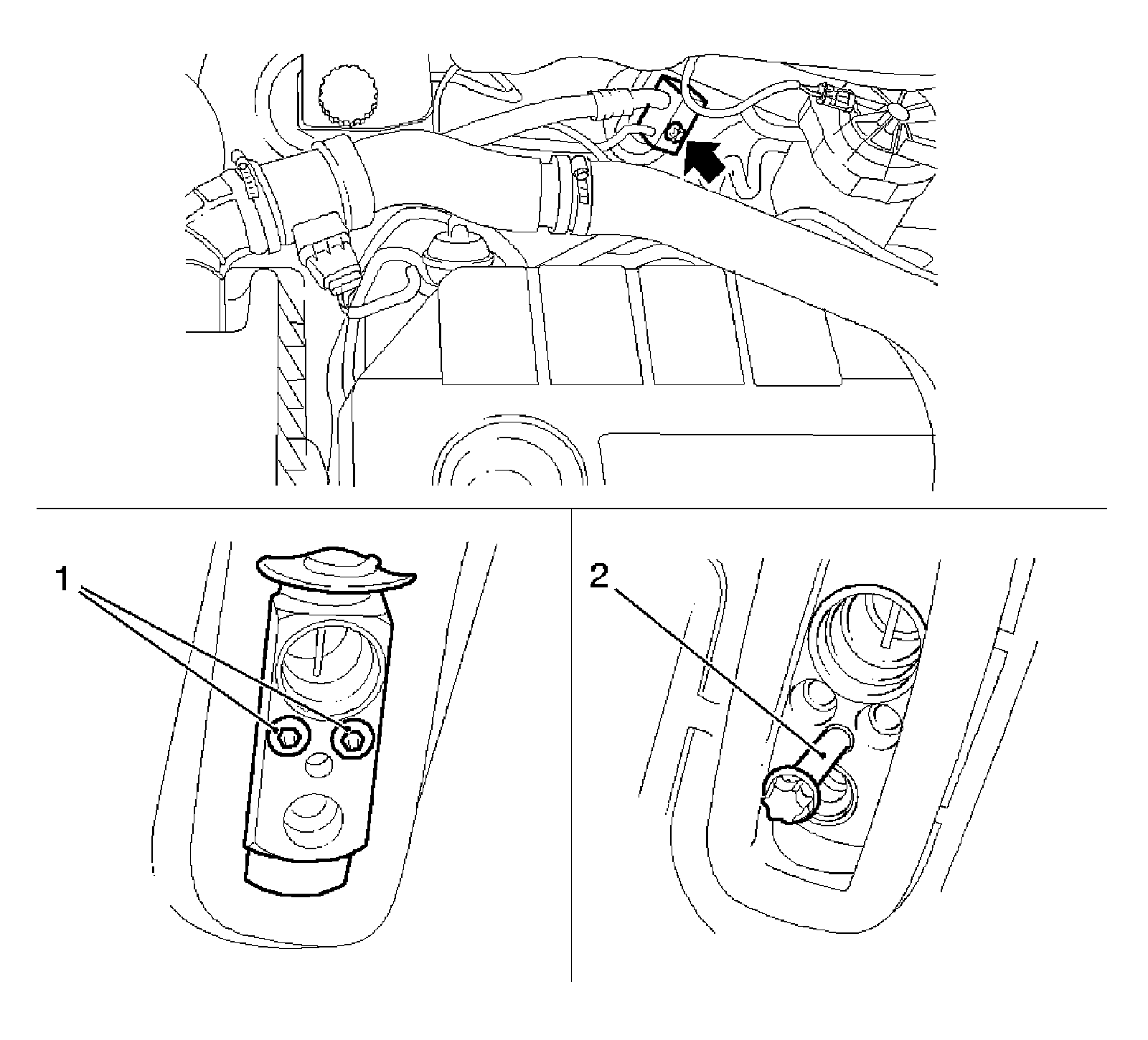 Insert the bolt, block connector refrigerant line in the expansion valve (2) and remove the expansion valve.