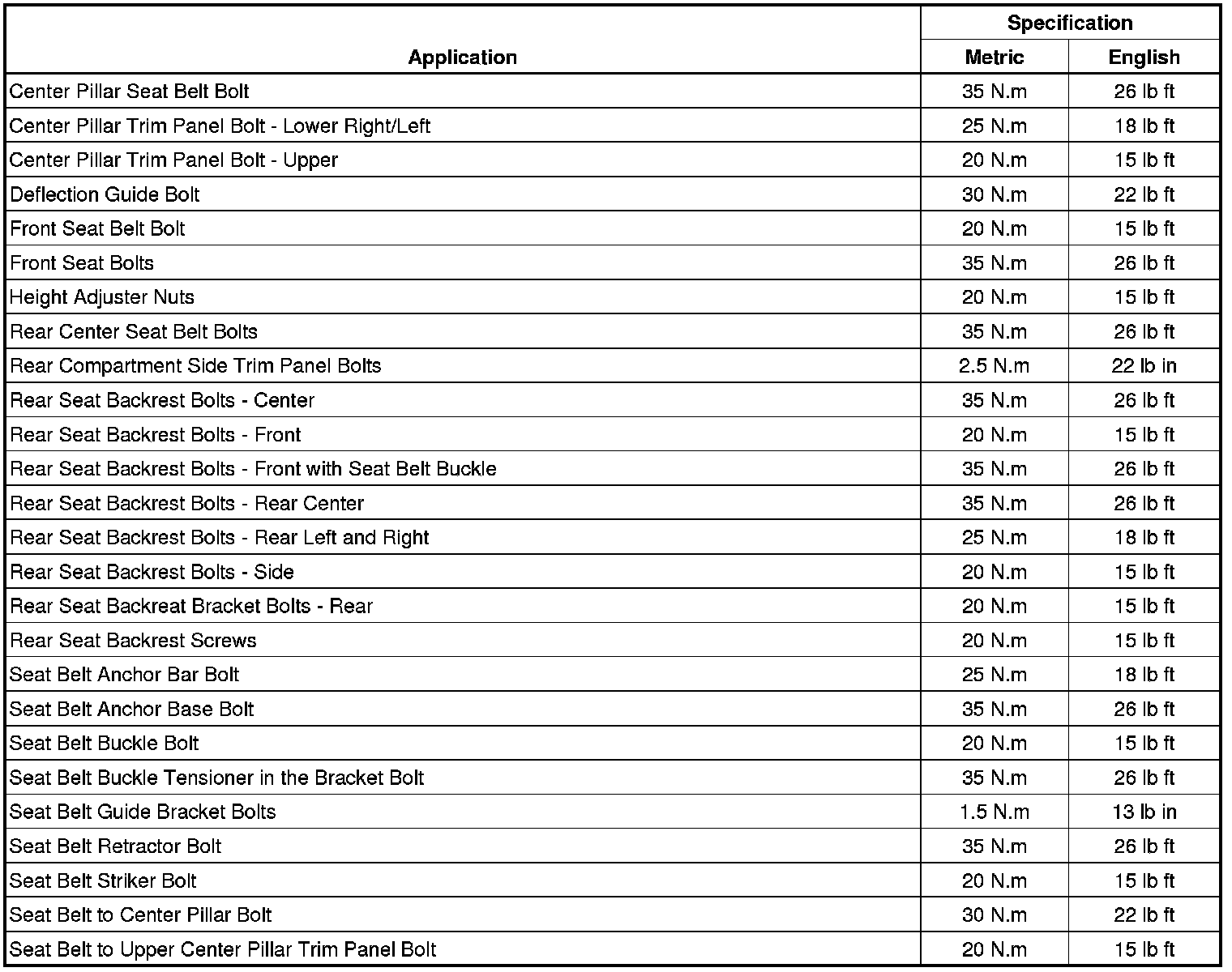Fastener Tightening Specifications
