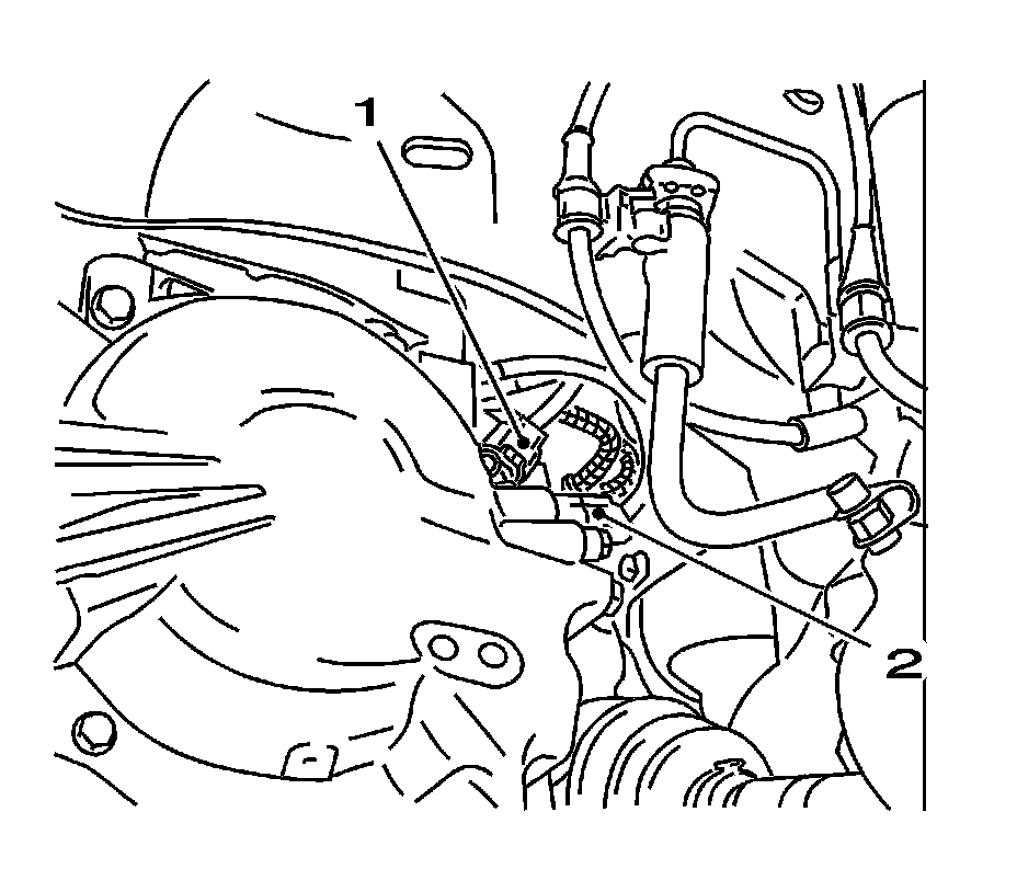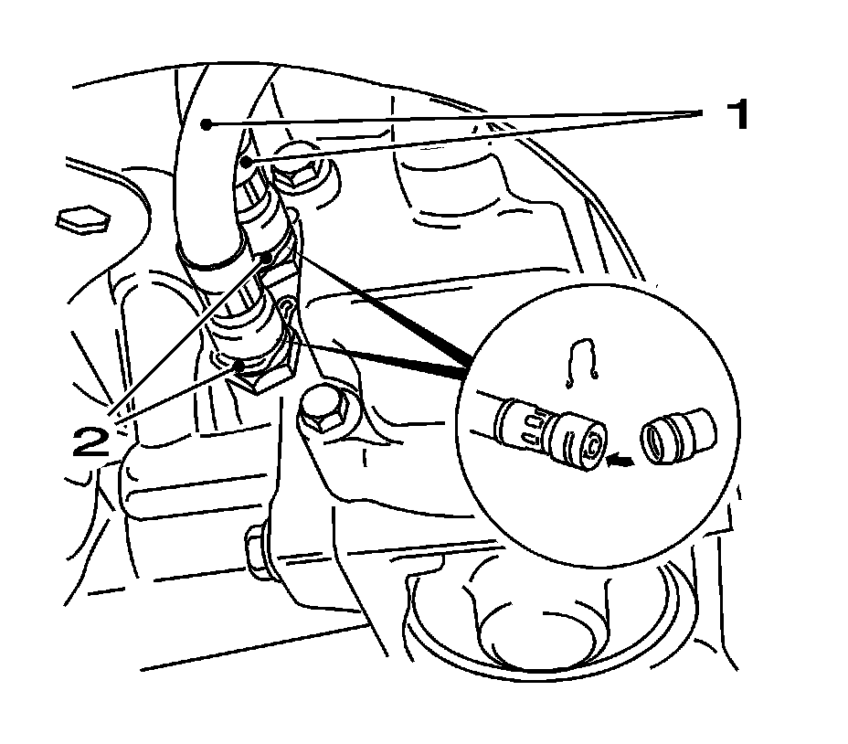Disconnect the 2 retaining clamps (2) from the snap fitting.