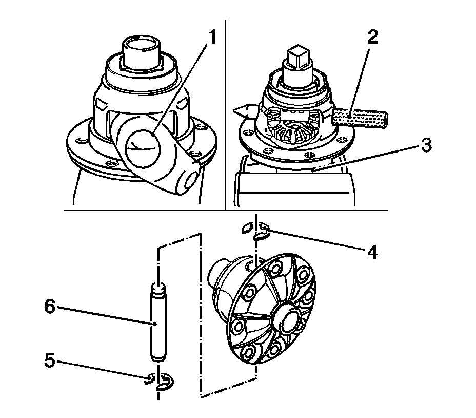 1. Install plastic cage in differential. It must be possible to insert the collar (1) of plastic cage into the guide for the drive pinions in the housing.