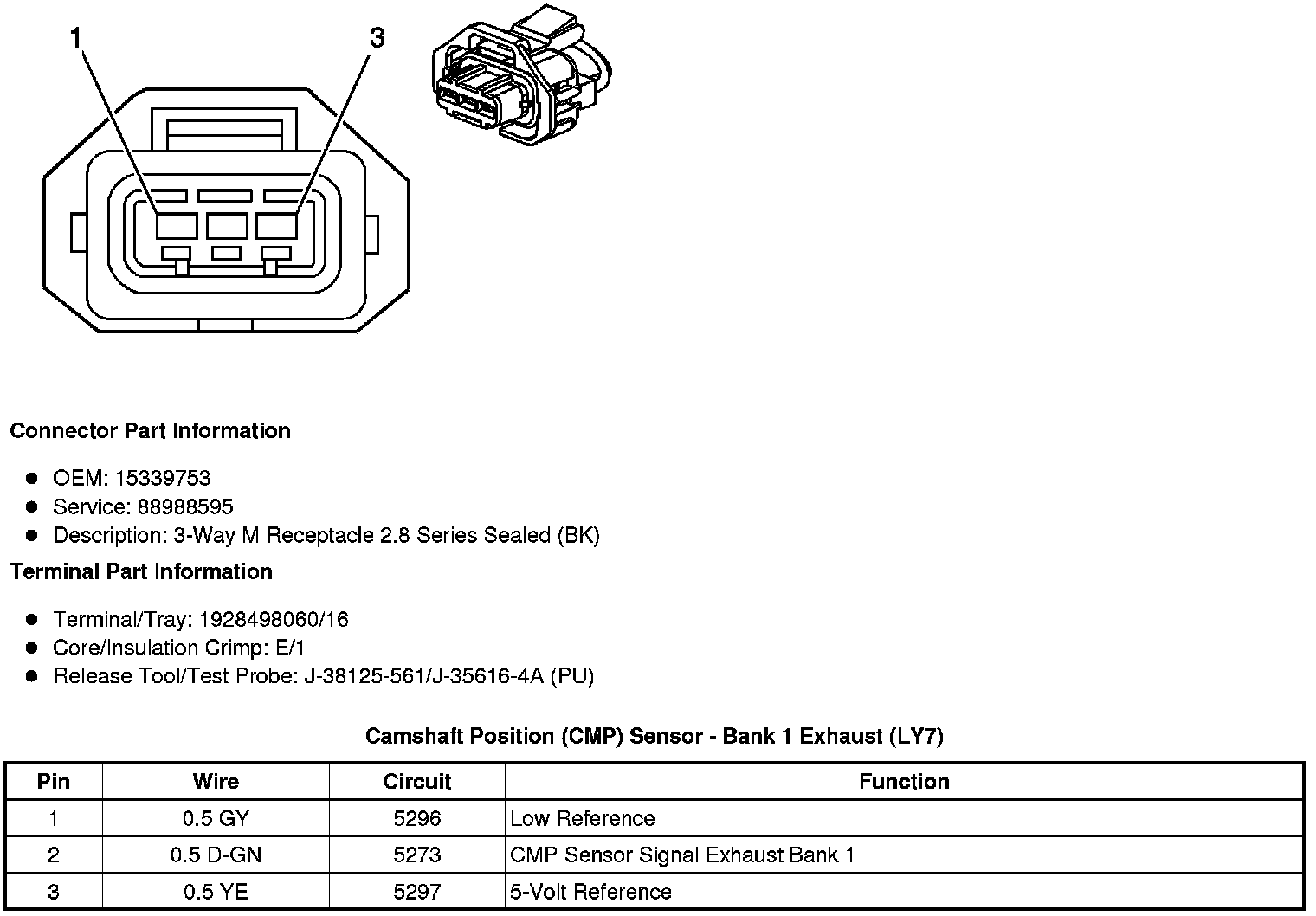 Camshaft Position (CMP) Sensor - Bank 1 Exhaust (LY7)
