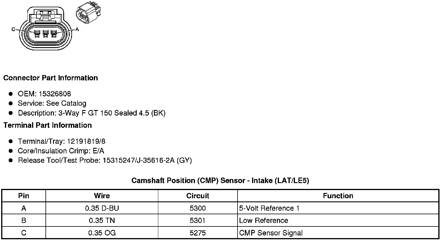 Camshaft Position (CMP) Sensor - Intake (LAT/LE5)
