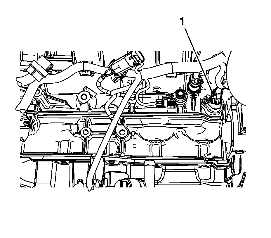 2. Disconnect the engine wiring harness electrical connector (1) from the crankshaft position (CKP) sensor.