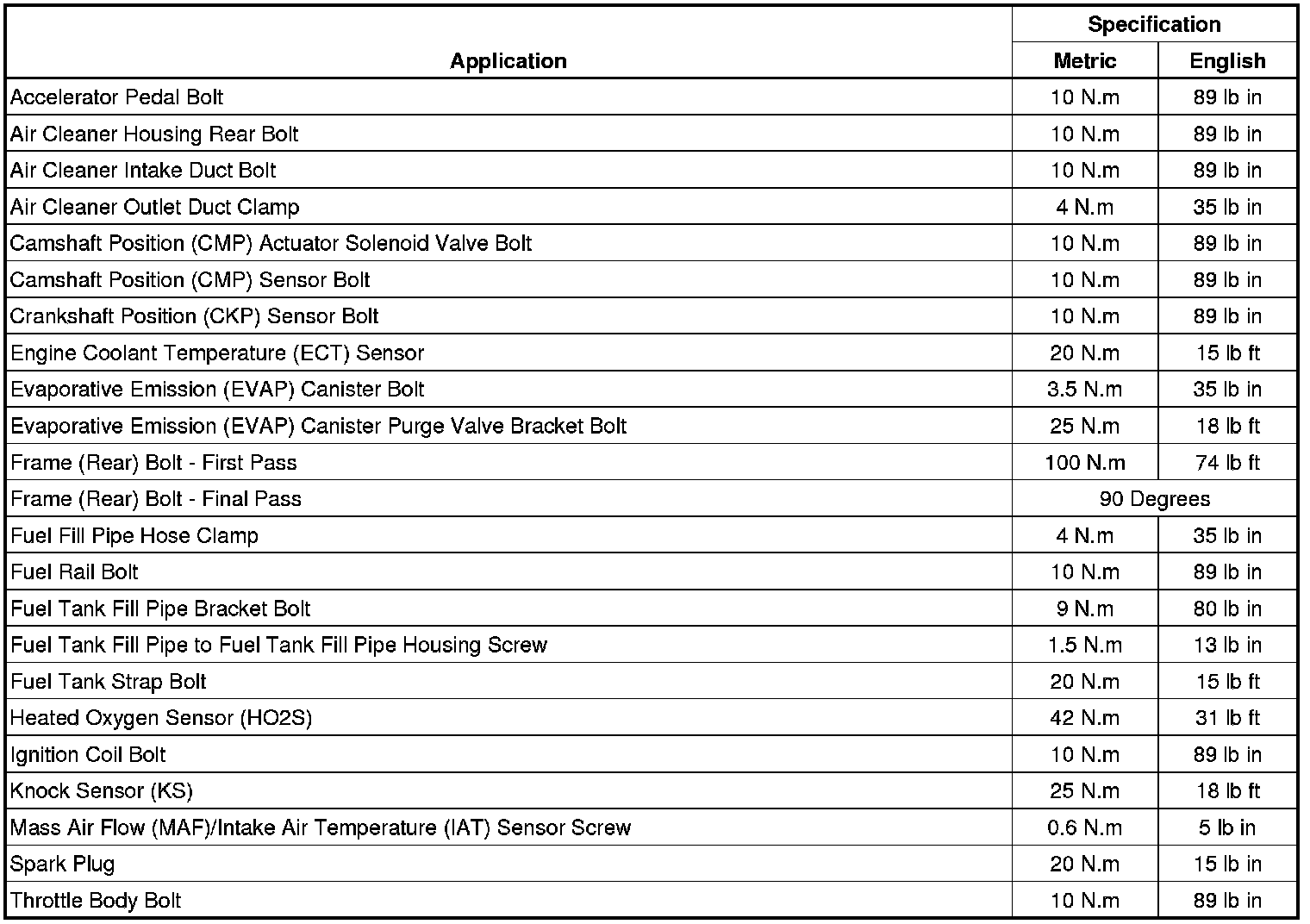 Fastener Tightening Specifications