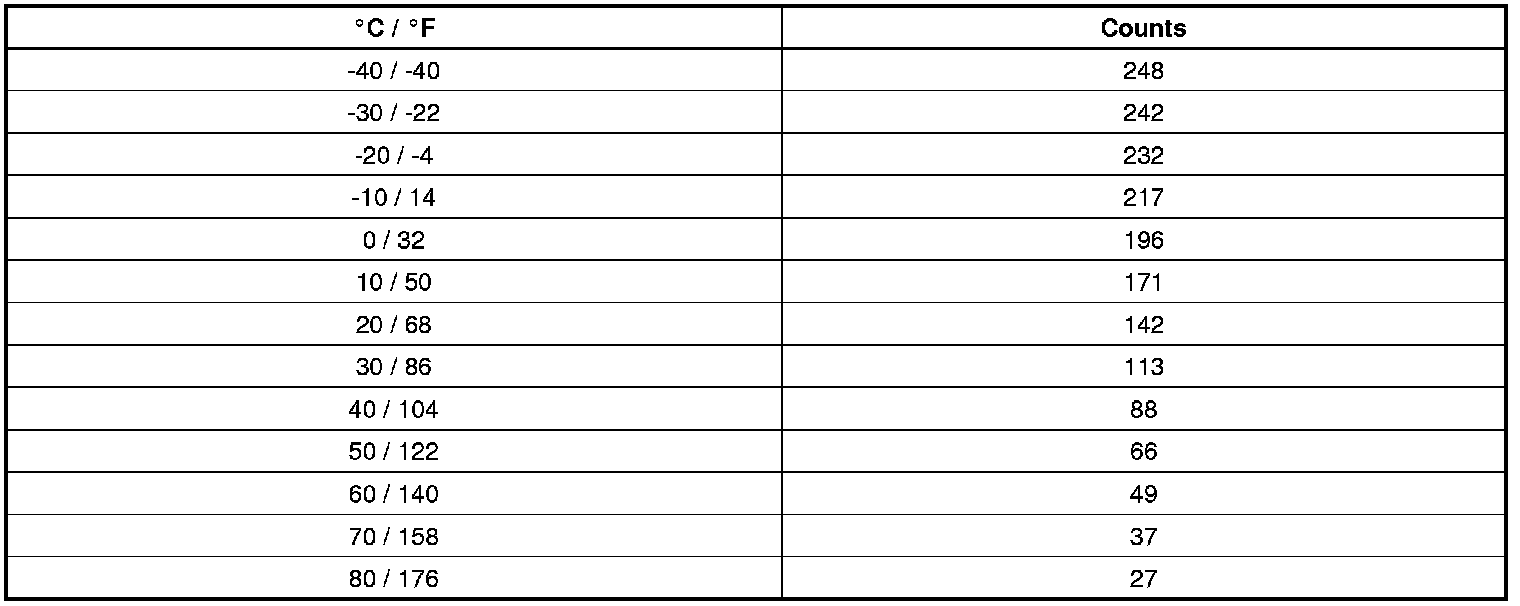 Sensor Resistance Table (Duct Temp conversion temp to counts)