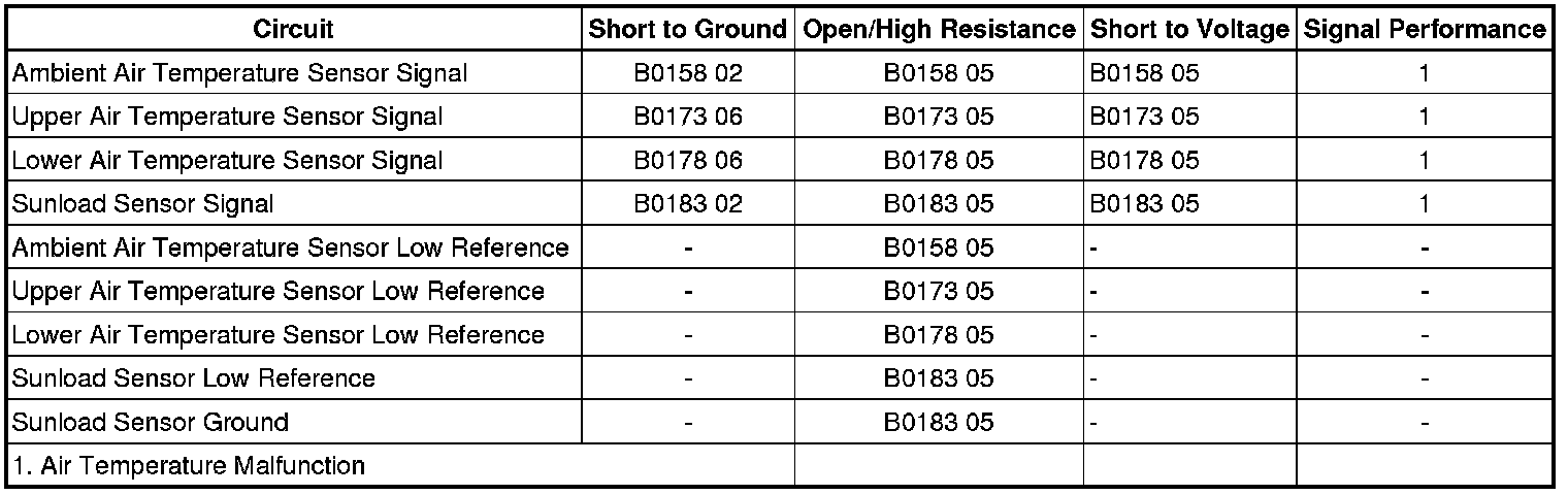 * The default value of 85°C (185°F) will be substituted for the ambient air temperature sensor data by the HVAC control module.