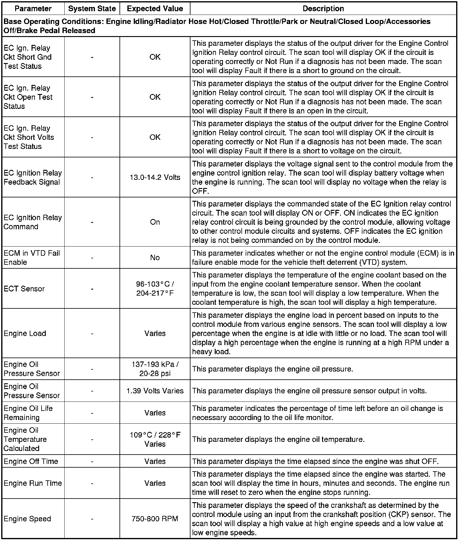 The Engine Control Module Scan Tool Data List contains all engine-related parameters that are available on the scan tool. The list is arranged in alphabetical order. A given parameter may appear in any one of the data lists, and in some cases may appear more than once, or in more than one data list in order to group certain related parameters together.
