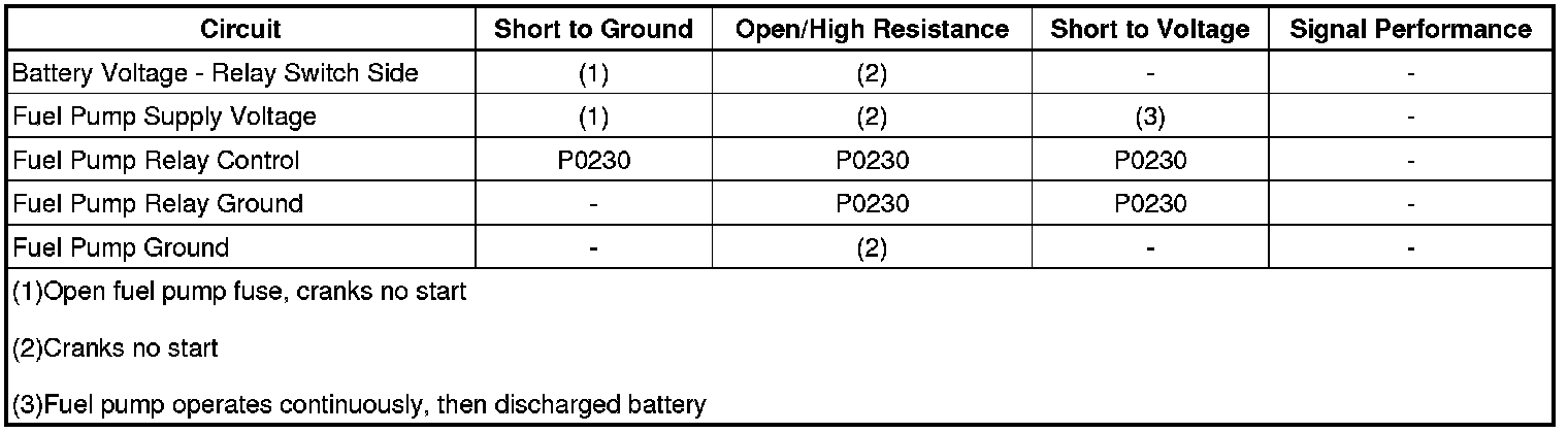 Fuel Pump Electrical Circuit Diagnosis