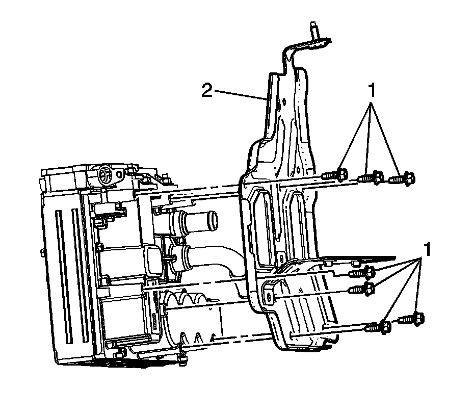 16. Remove the generator control bracket bolts (1) and the generator control module bracket (2).