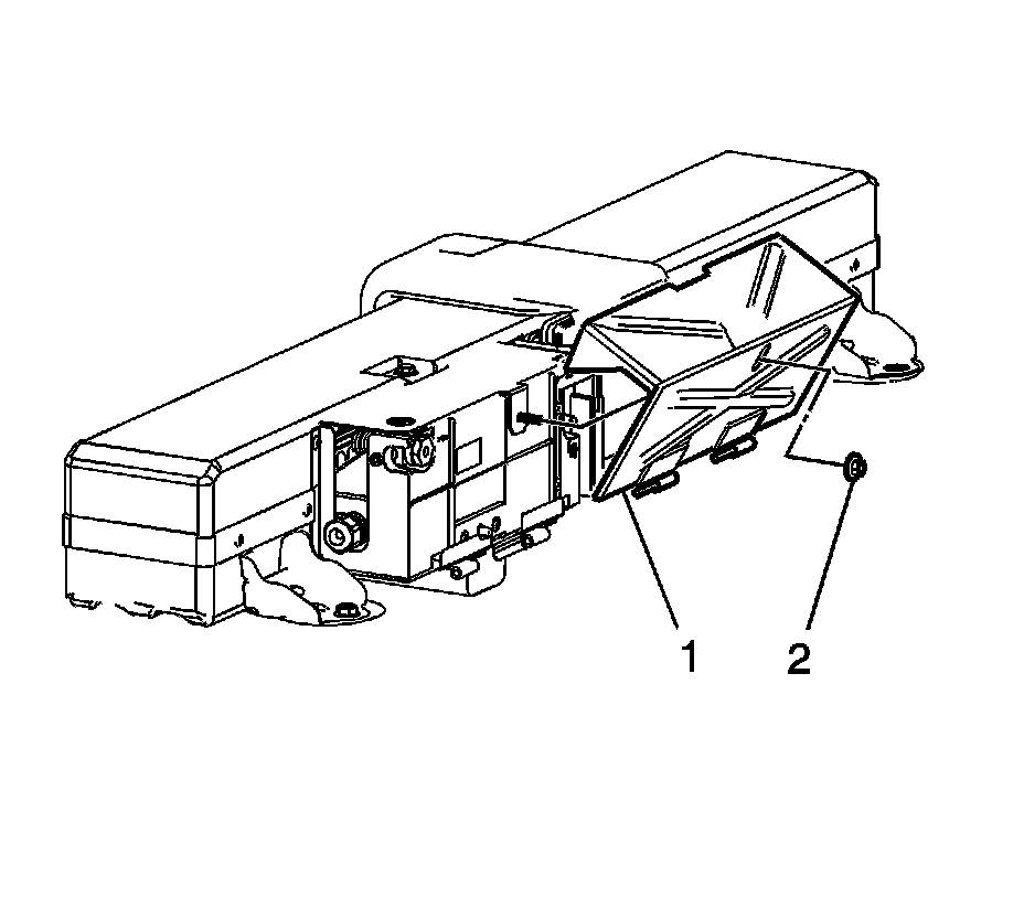 1. Install and close the generator battery disconnect control module cover (1) and nut (2).