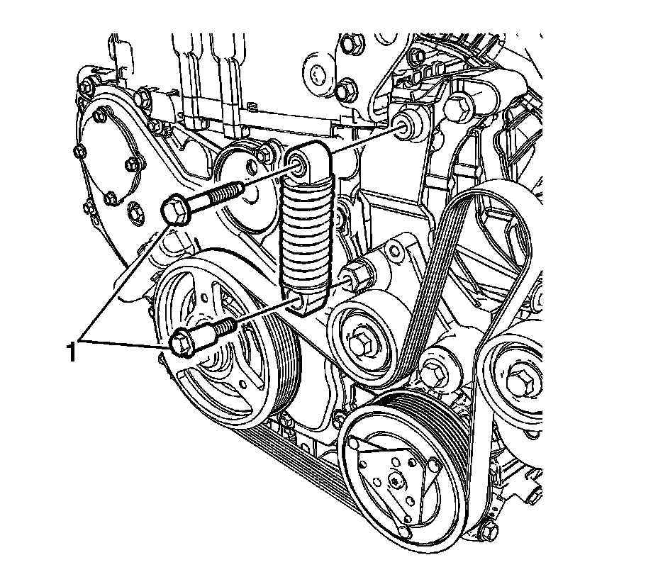 3. Install the tensioner spring bolts (1) to the tensioner.