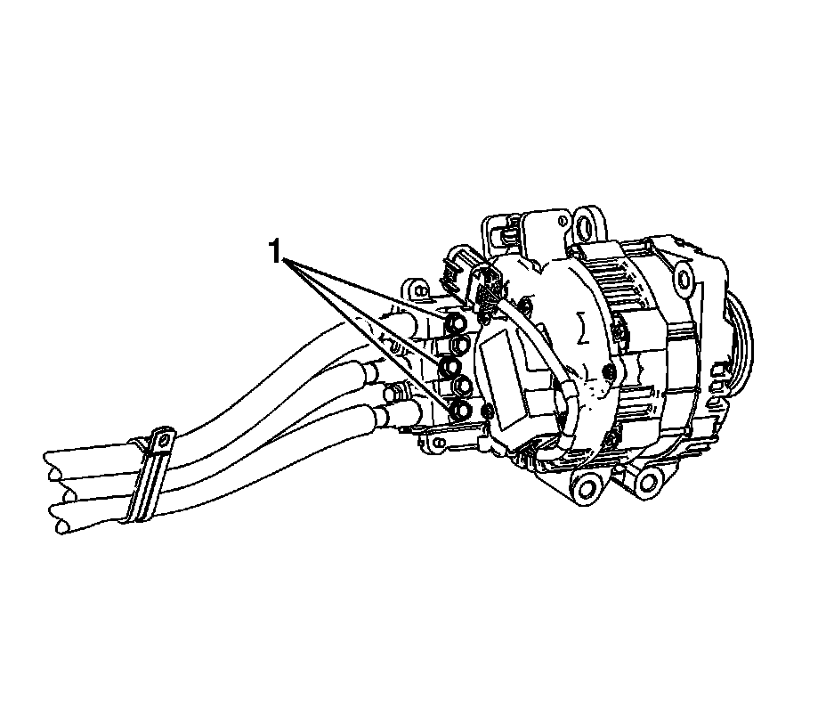 5. Install the rear generator control module 3-phase cable bolts (1). Tighten the bolts to 8 Nm (71 lb in).