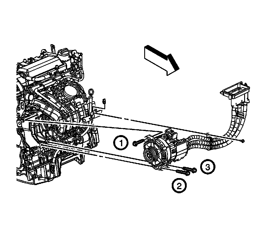 10. Tighten the generator starter bolts in the sequence shown. Tighten the bolts to 58 Nm (43 lb ft).