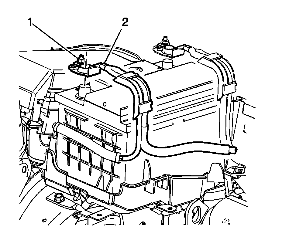 3. Install the battery hold down retainer bolt (1) and tighten to 25 Nm (18 lb ft).