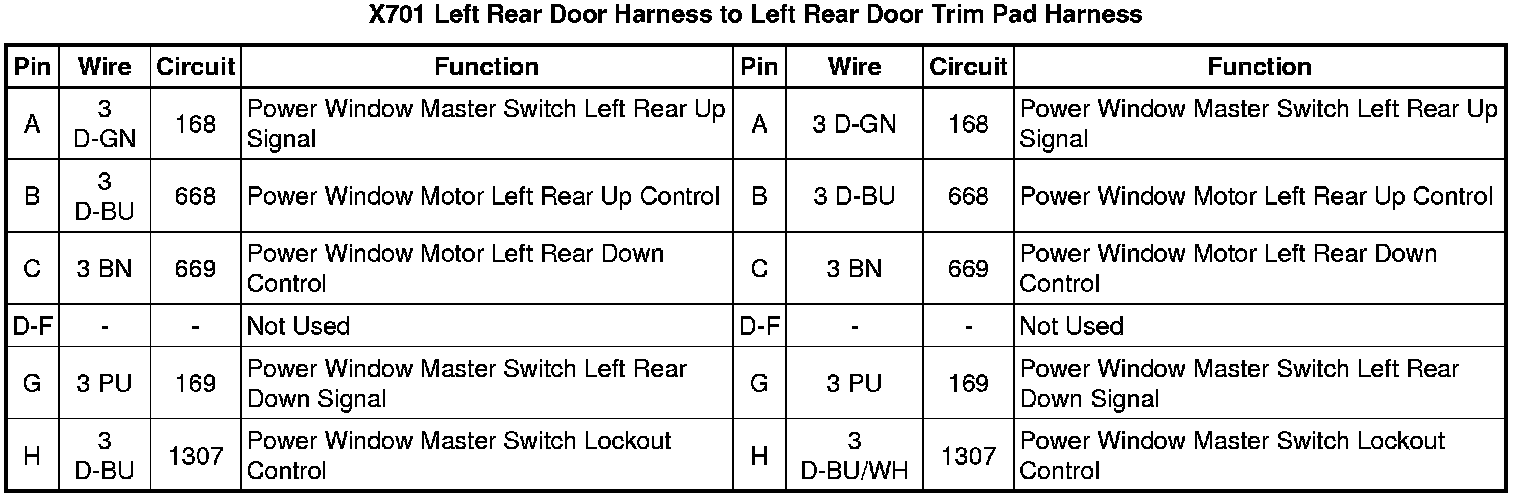 X701 Left Rear Door Harness to Left Rear Door Trim Pad Harness