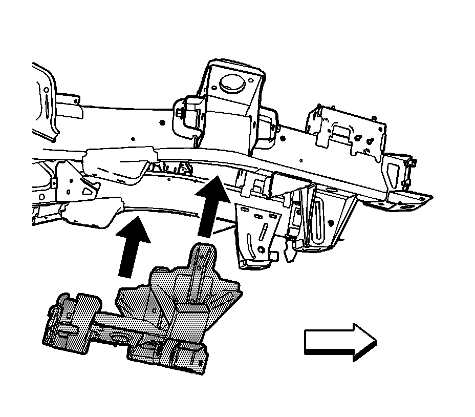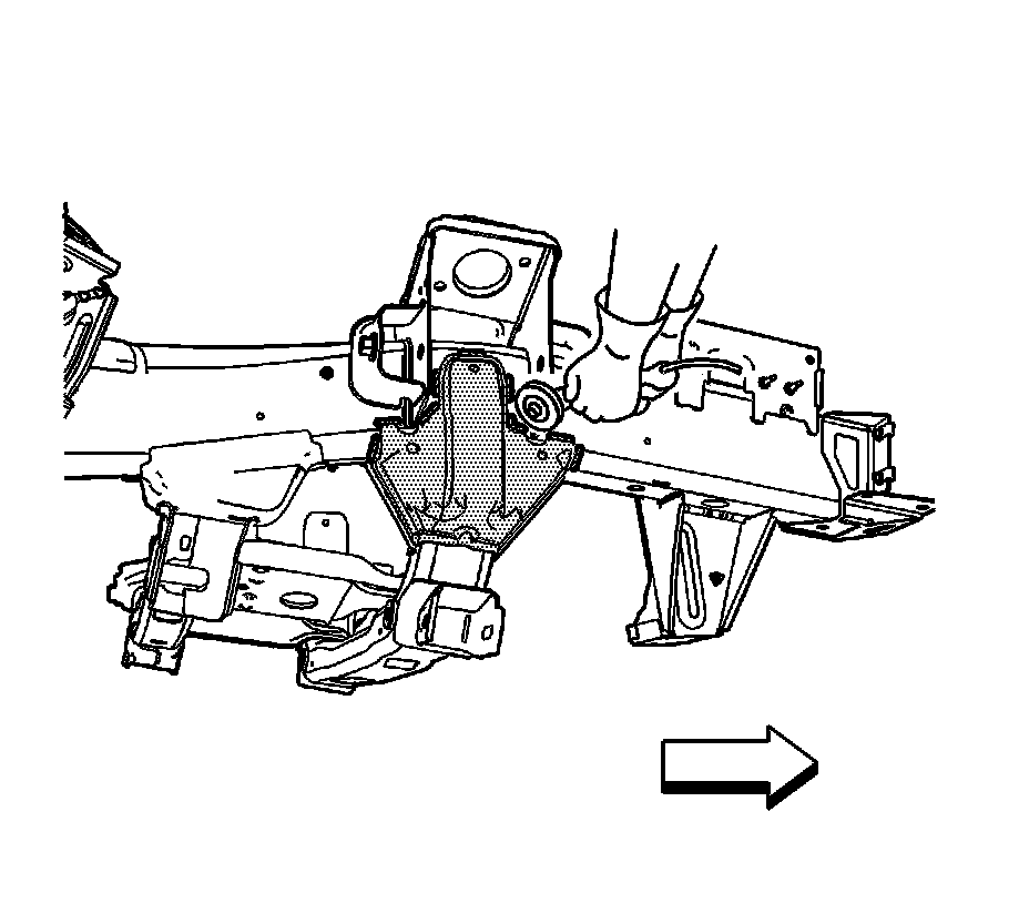 5.Position the outer crossmember outer crossmember brackets to the vehicle. Ensure proper positioning of the crossmember by using 3-dimensional measuring equipment. Clamp the crossmember into place.