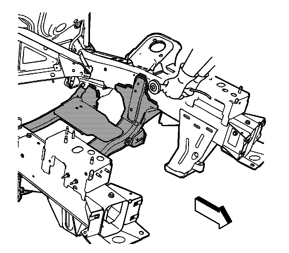 Note:When removing the welds, favor the crossmember side of the weld joint. Do not damage the frame rails or the attaching brackets.