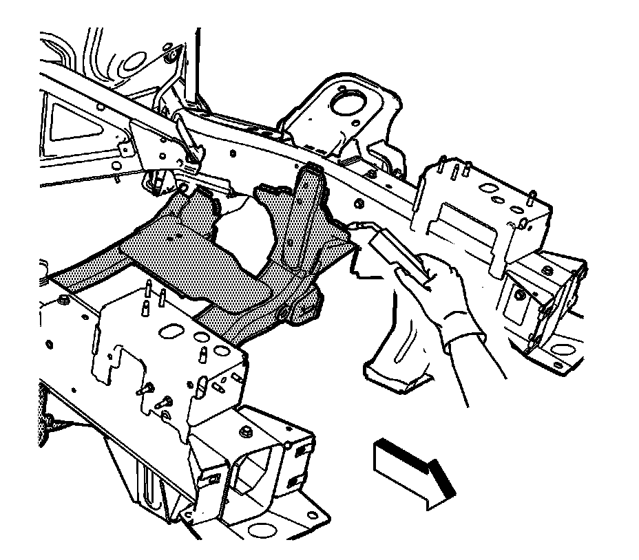 Note:When removing the welds, favor the crossmember bracket side of the weld joint. Do not damage the frame rails.