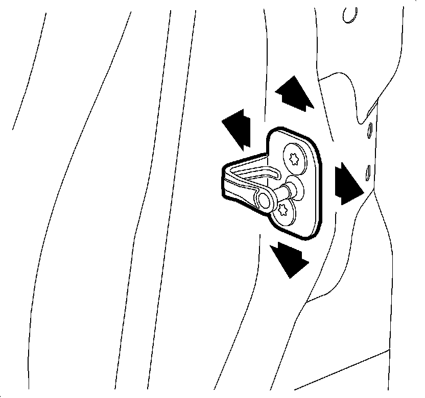 4. Move the striker to eliminate drag on the striker and door latch and to achieve the proper door position within the door opening. Start with the up/down position, then position the striker to achieve proper alignment to the door opening. Set the in/out adjustment for the proper door seal engagement making sure the door closing efforts are correct.