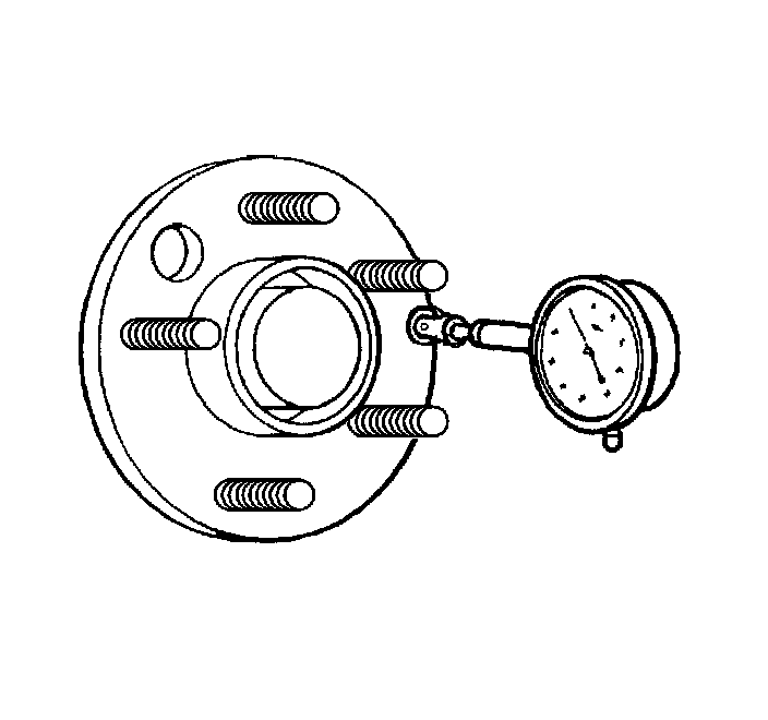 12. If the runout of the wheel hub/axle flange is excessive, replace the wheel hub/axle flange. Measure the runout of the new wheel hub/axle flange.
