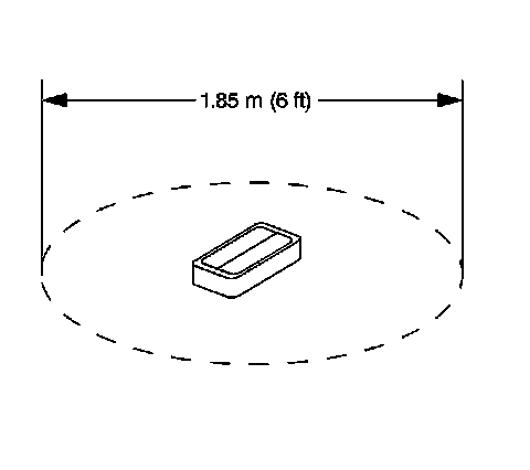 3. Clear a space on the ground about 1.85 m (6 ft) in diameter for deployment of the inflator module or deployment fixture. If possible, use a paved, outdoor location free of activity. Otherwise, use a space free of activity on the shop floor. Ensure you have sufficient ventilation.