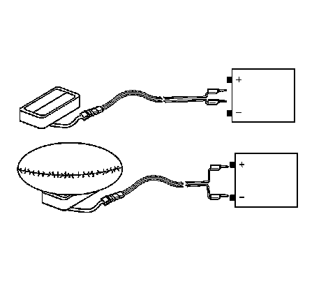 58. Place a power source, 12V minimum/2A minimum, such as a vehicle battery, near the shorted end of the harnesses.