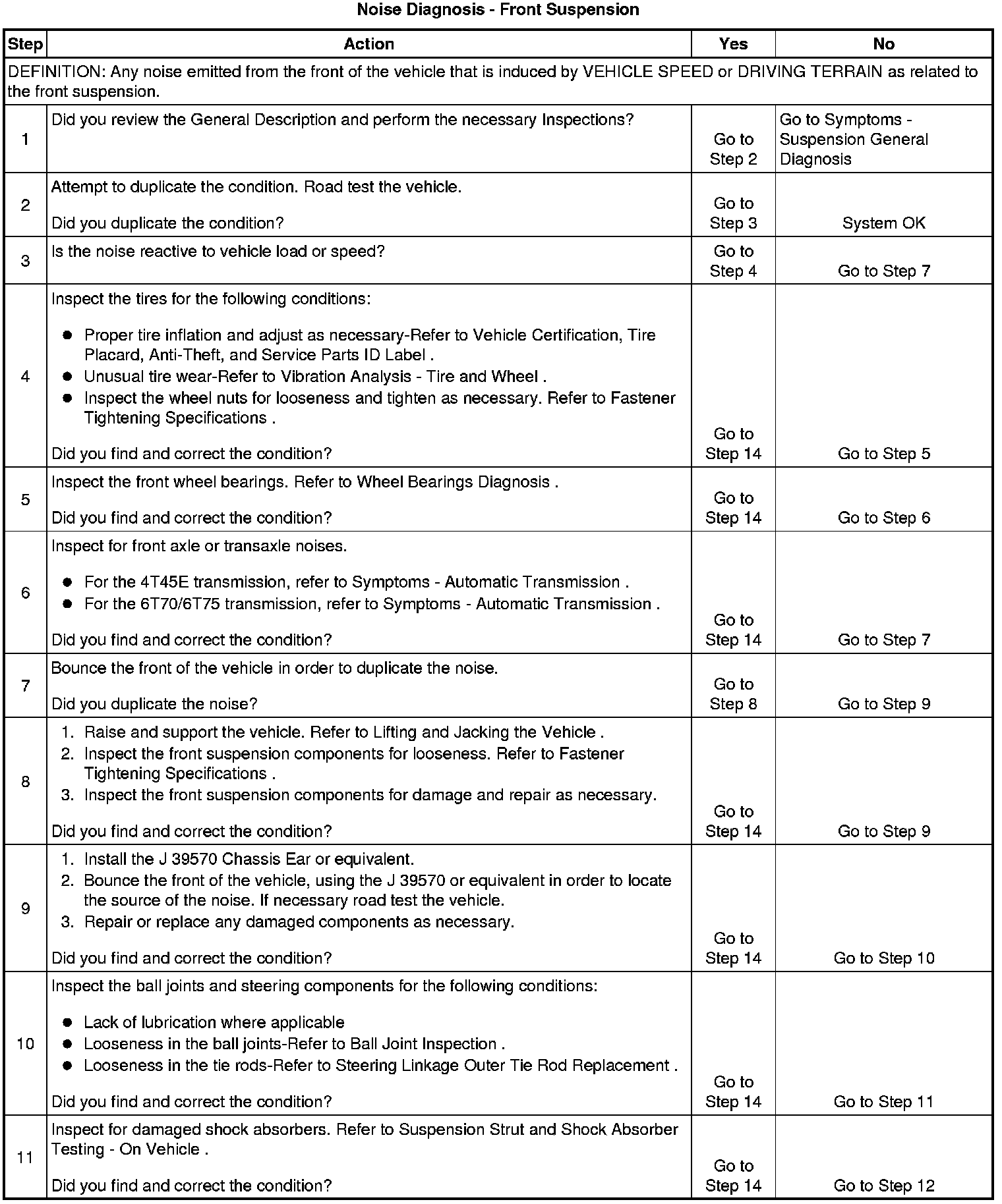 Noise Diagnosis - Front Suspension