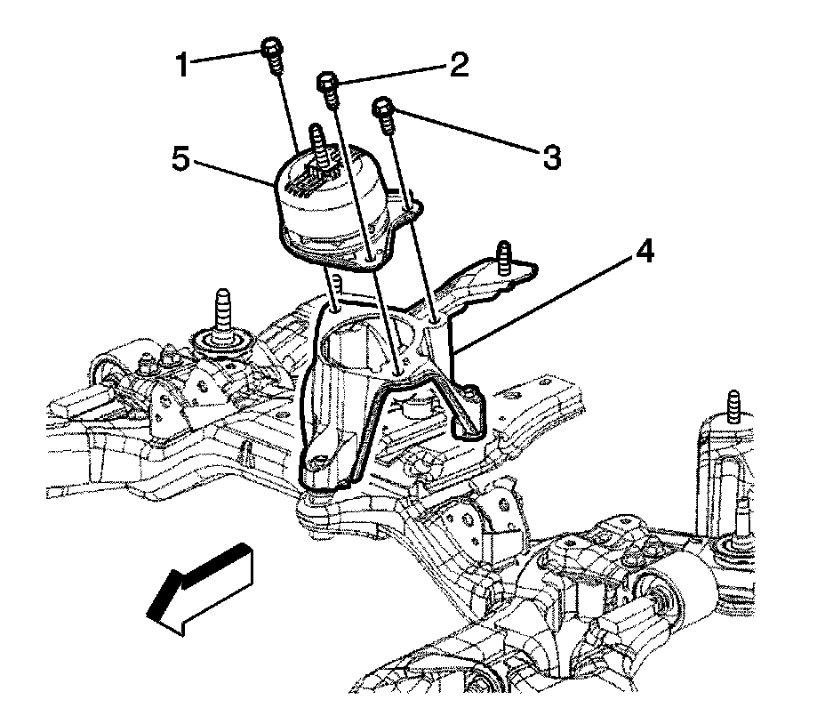 4. Remove the rear transaxle mount-to-bracket attachment bolts (1,2,3).