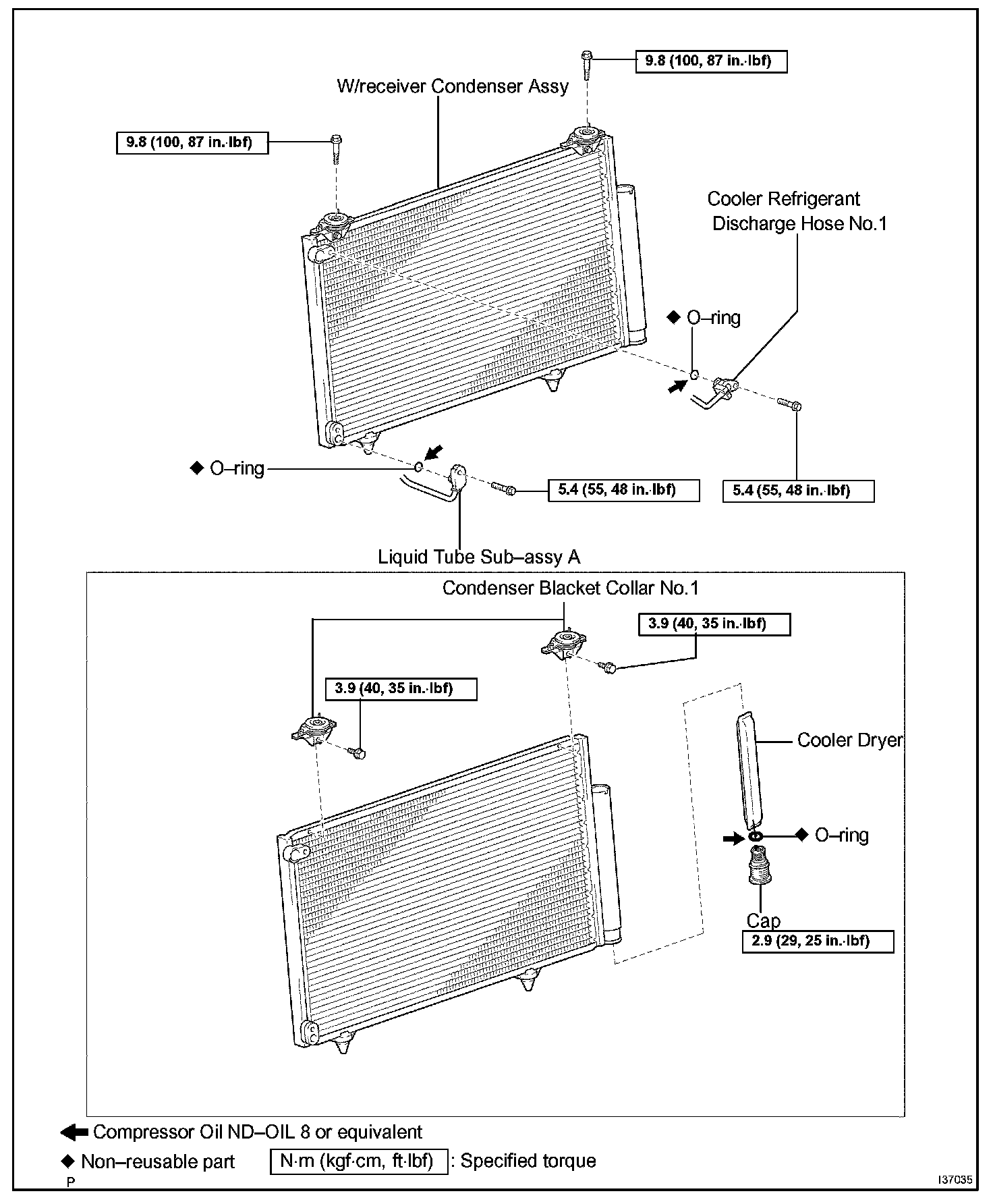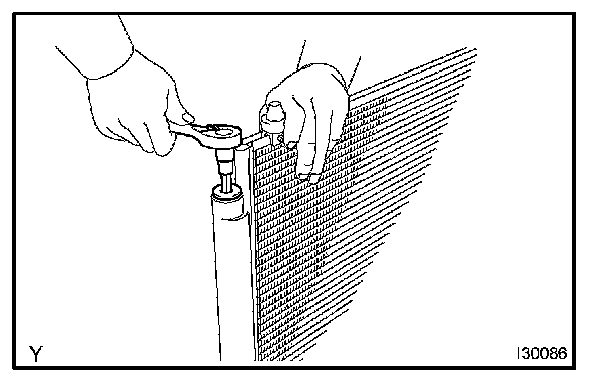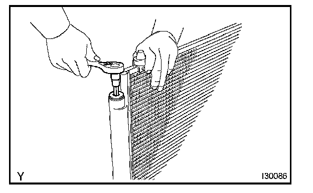 d. Install the cooler refrigerant discharge hose No.1 to the w/receiver condenser assy with the bolt.