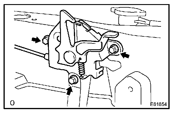 a. Remove the 3 bolts and hood lock assy.