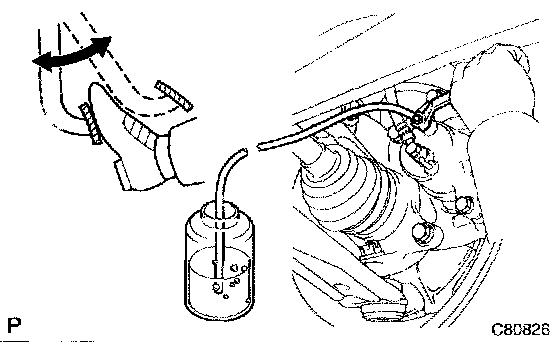 c. When the fluid stops coming out, tighten the bleeder plug, and then release the brake pedal.