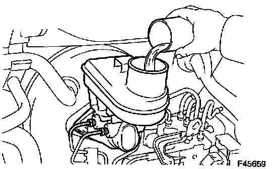 HINT: After disassembling the master cylinder or when the reservoir becomes empty, bleed the air out of the master cylinder.