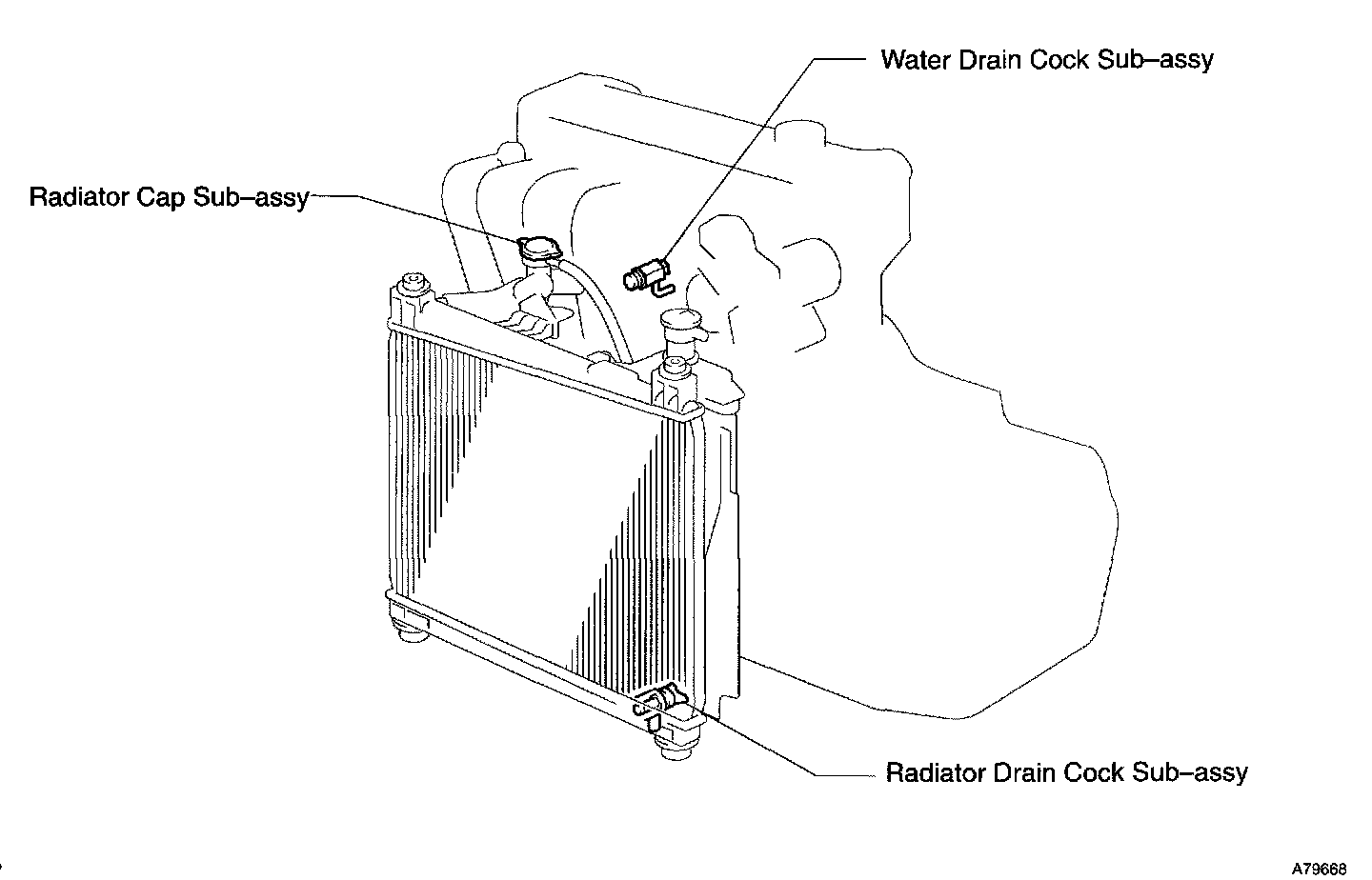 b. Loosen the radiator drain cock and drain the engine coolant.