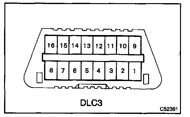 CHECK DLC3The vehicle's ECM uses the ISO 9141-2 for communication protocol. The terminal arrangement of the DLC3 complies with SAE J1962 and matches the ISO 9141-2 format.