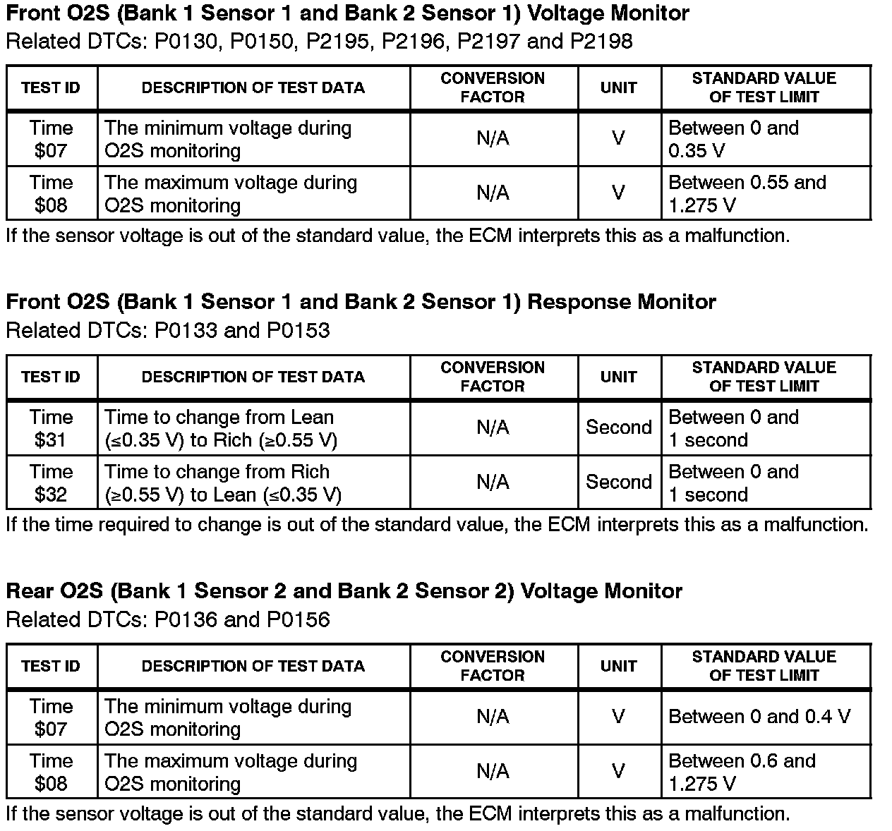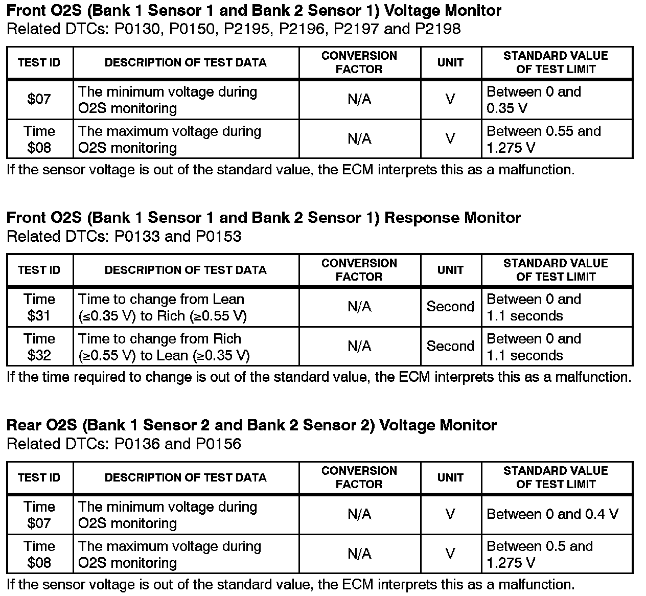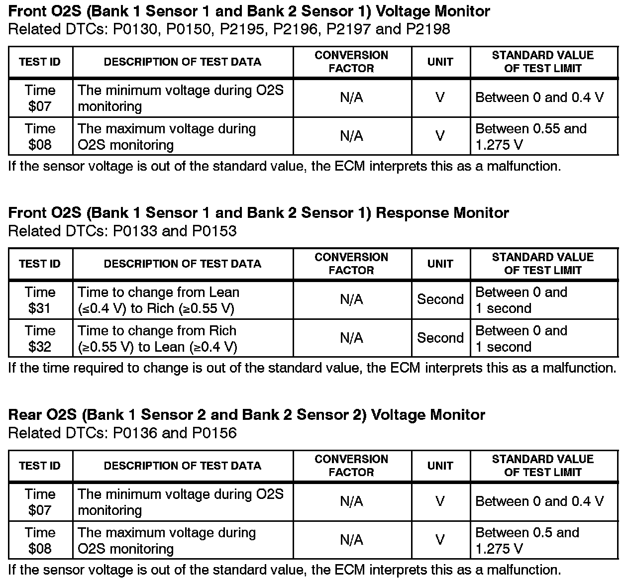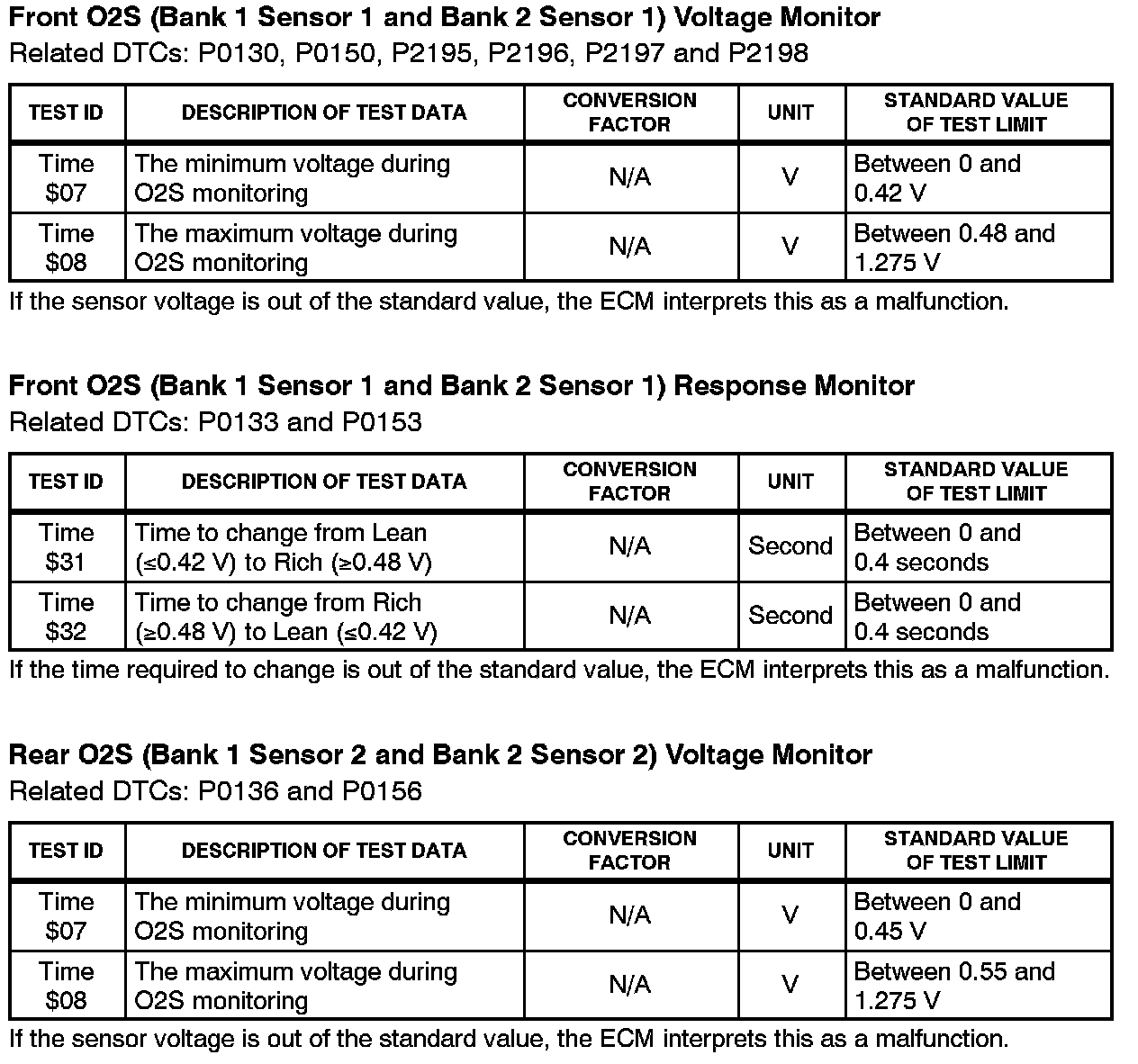 Engine Controls - O2 Sensor Threshold Monitor Values