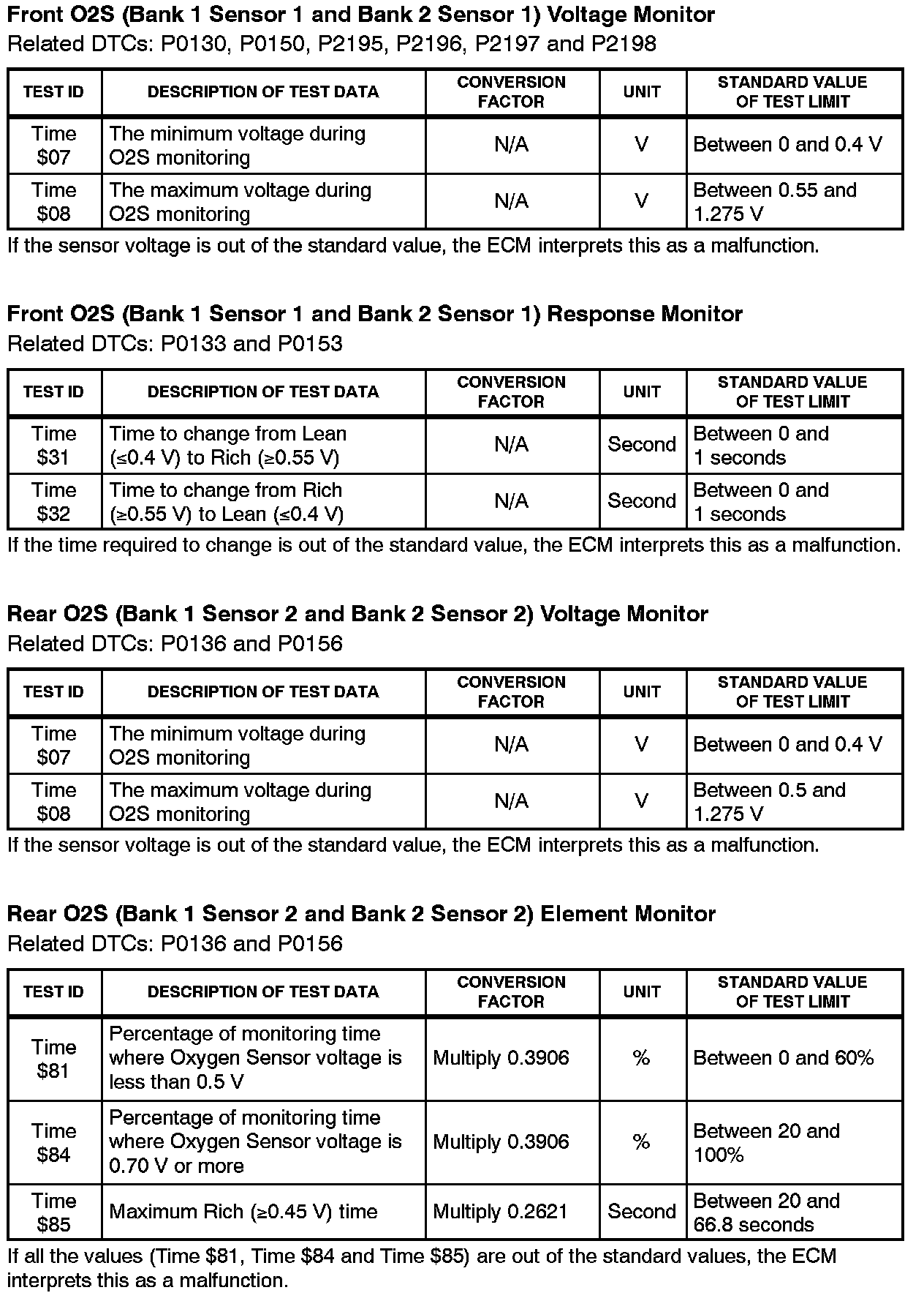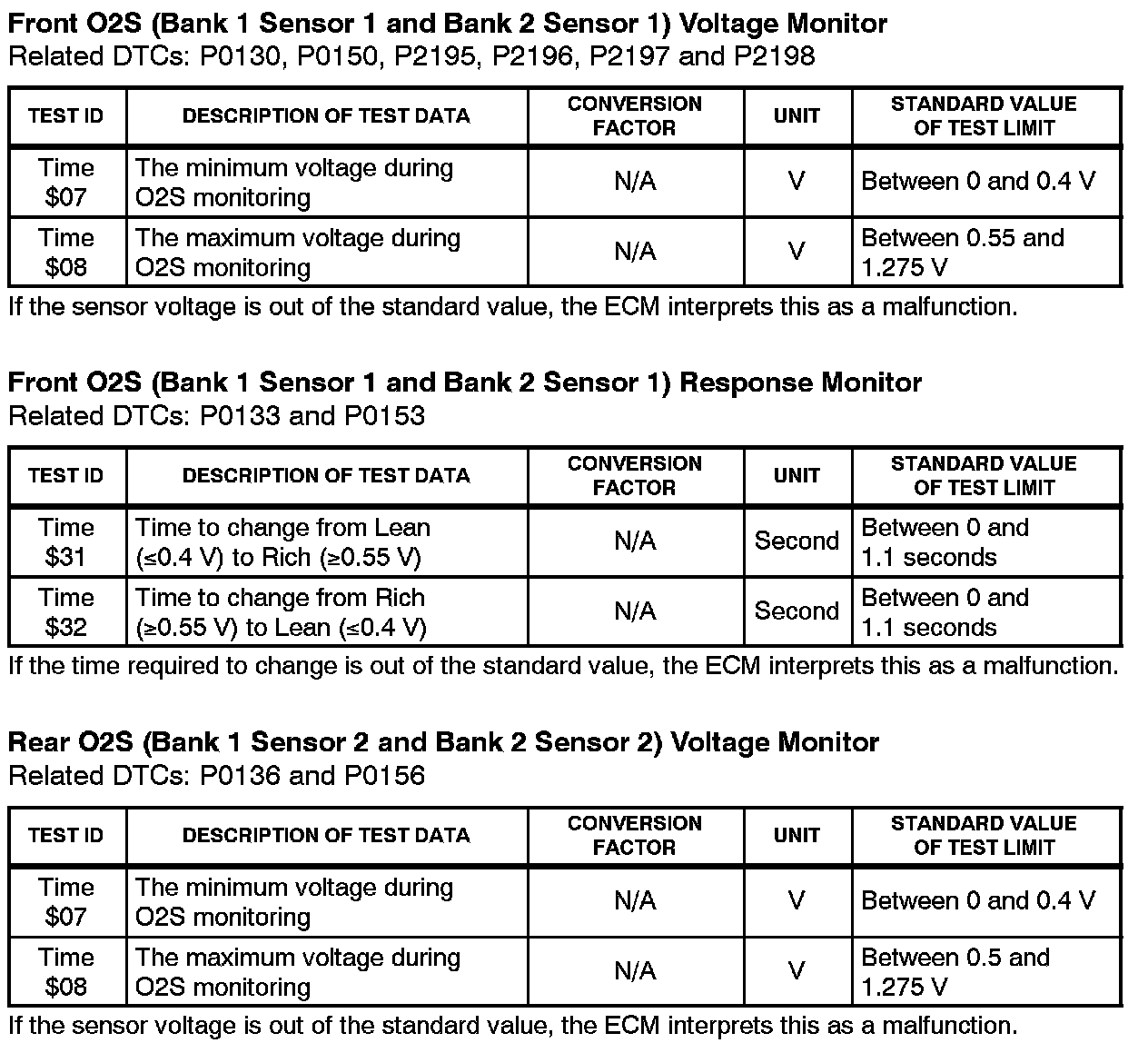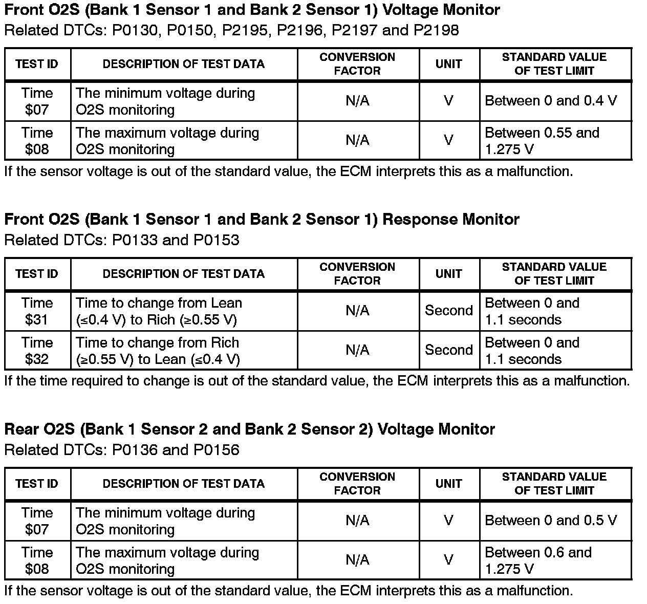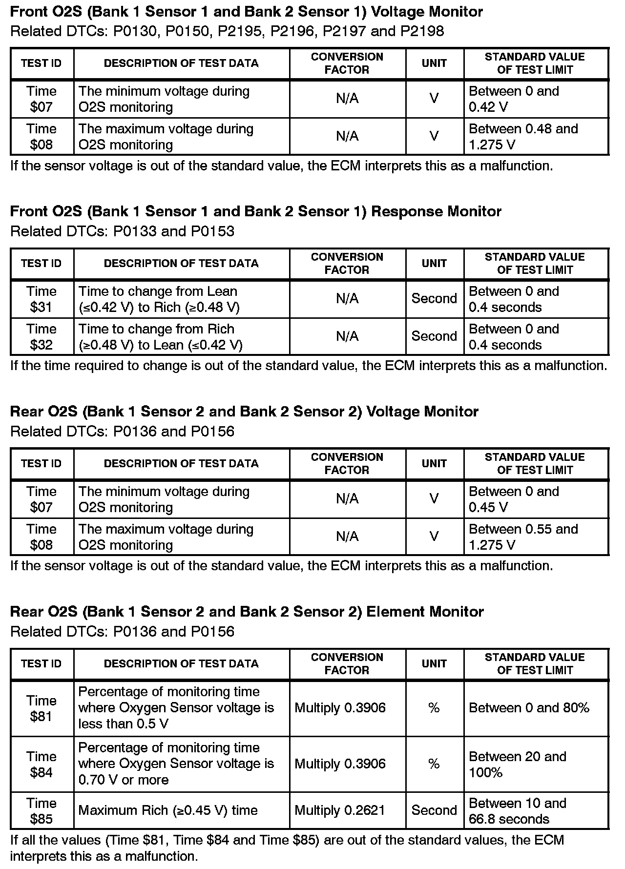 Engine Controls - O2 Sensor Threshold Monitor Values