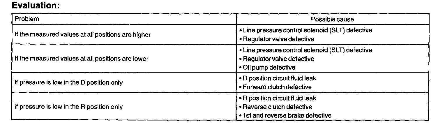 - Do the test at normal operation ATF temperature 50 to 80°C (122 to 176°F).