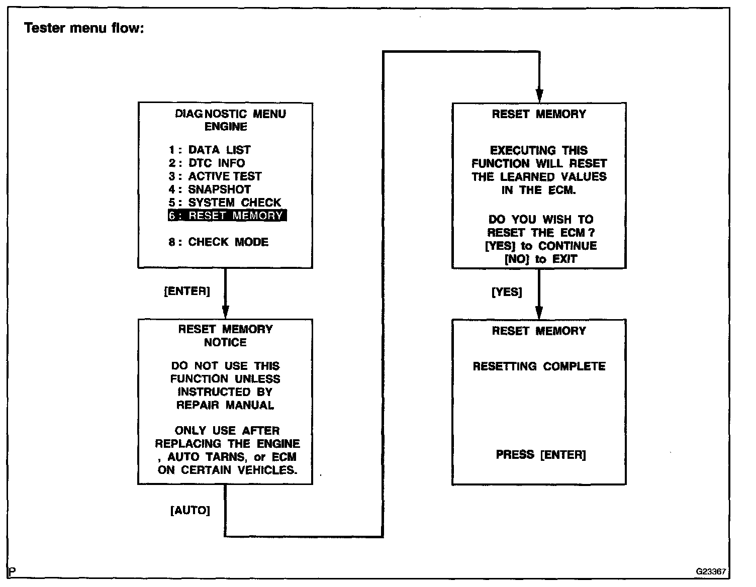 CAUTION: After performing the RESET MEMORY, be sure to perform the ROAD TEST described earlier.