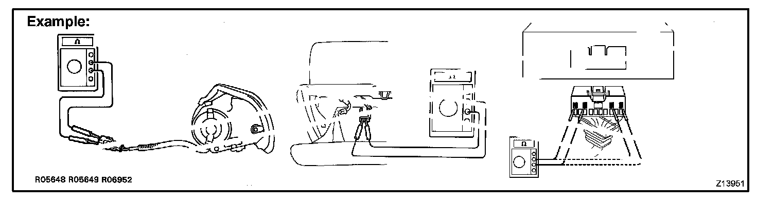 2. Never measure the resistance of the airbag squib (This may cause the airbag to inflate, which is very dangerous).